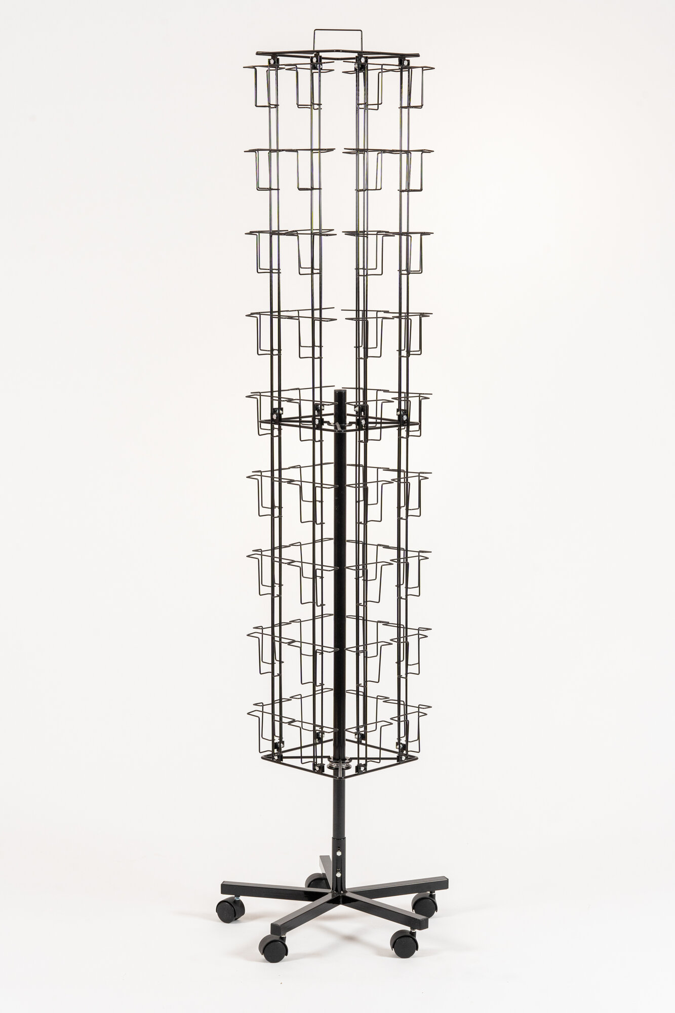 Торговое оборудование для магазина ,стойка для открыток напольная на колесиках, черная, 72 кармана