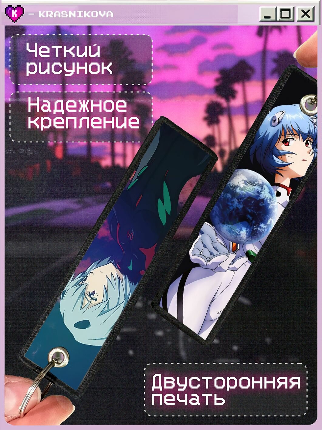Брелок KRASNIKOVA, черный, белый, голубой