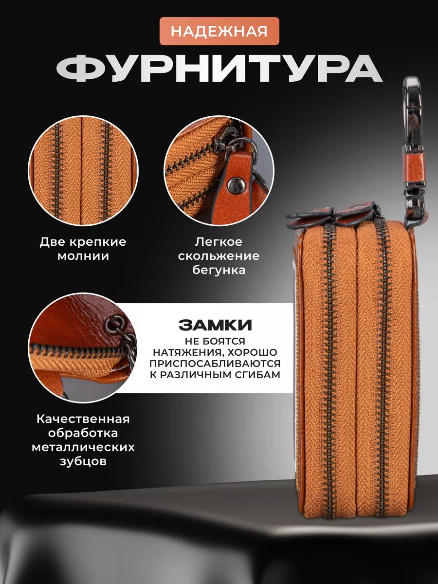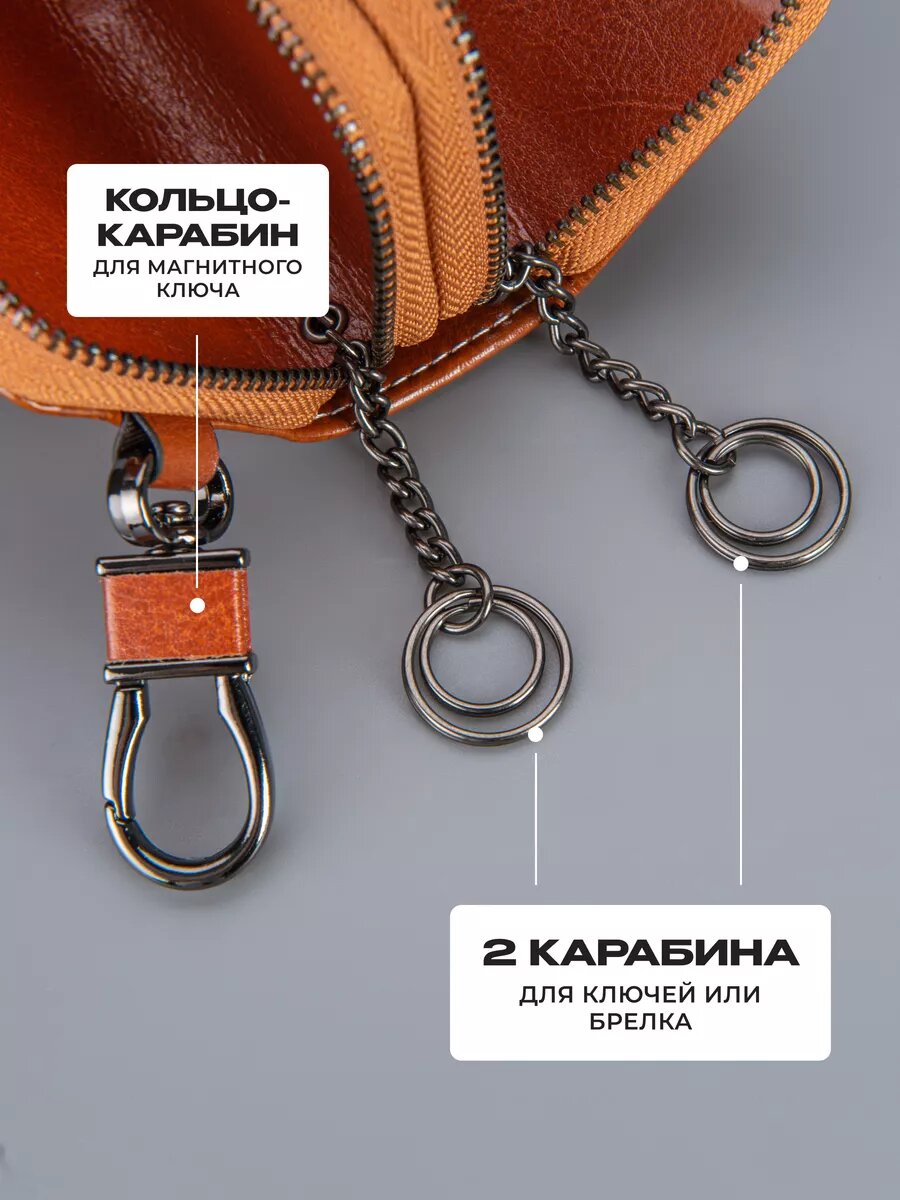Ключница кожаная карманная на молнии для авто и сумки
