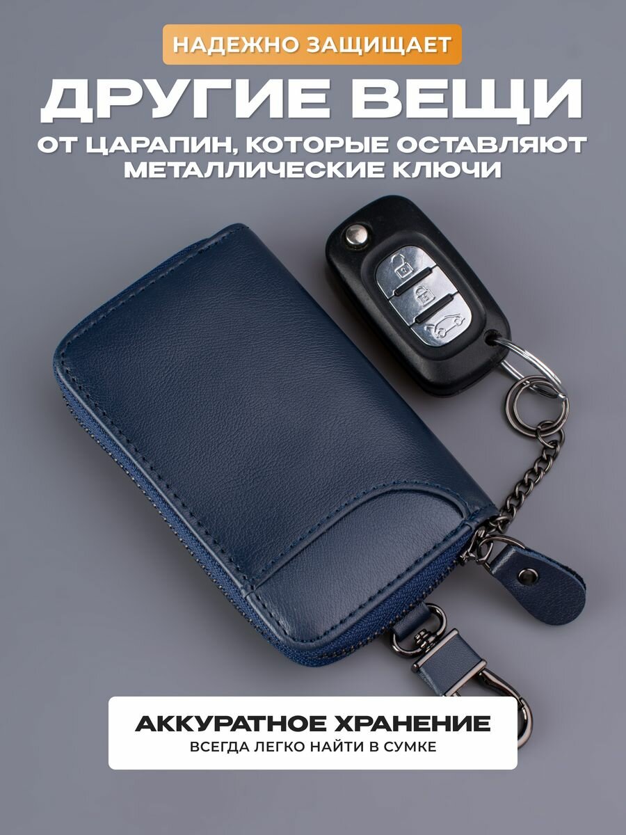 Ключница кожаная карманная на молнии для авто и сумки