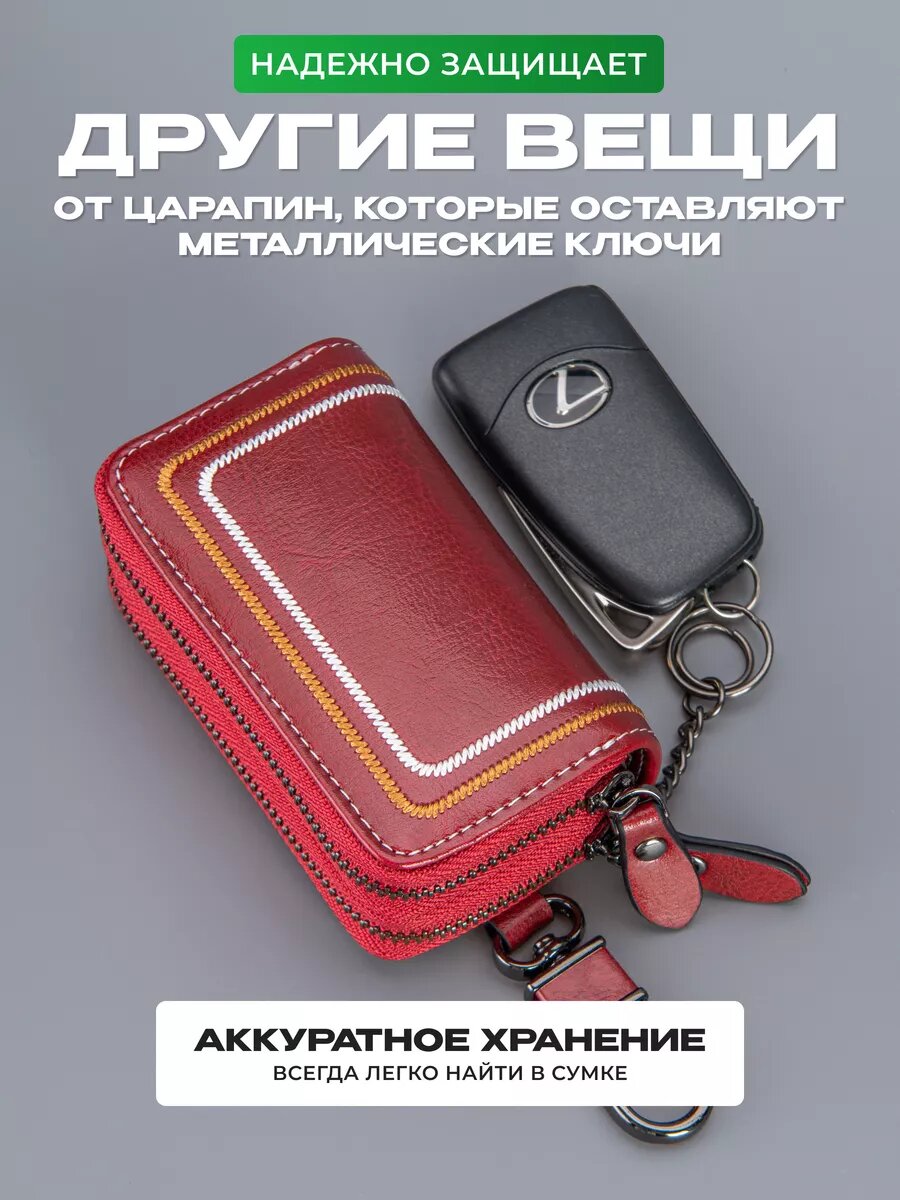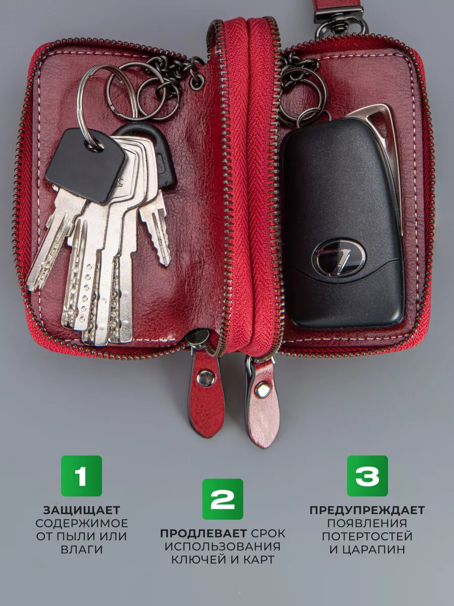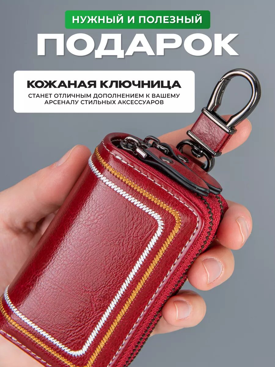 Ключница кожаная карманная на молнии для авто и сумки