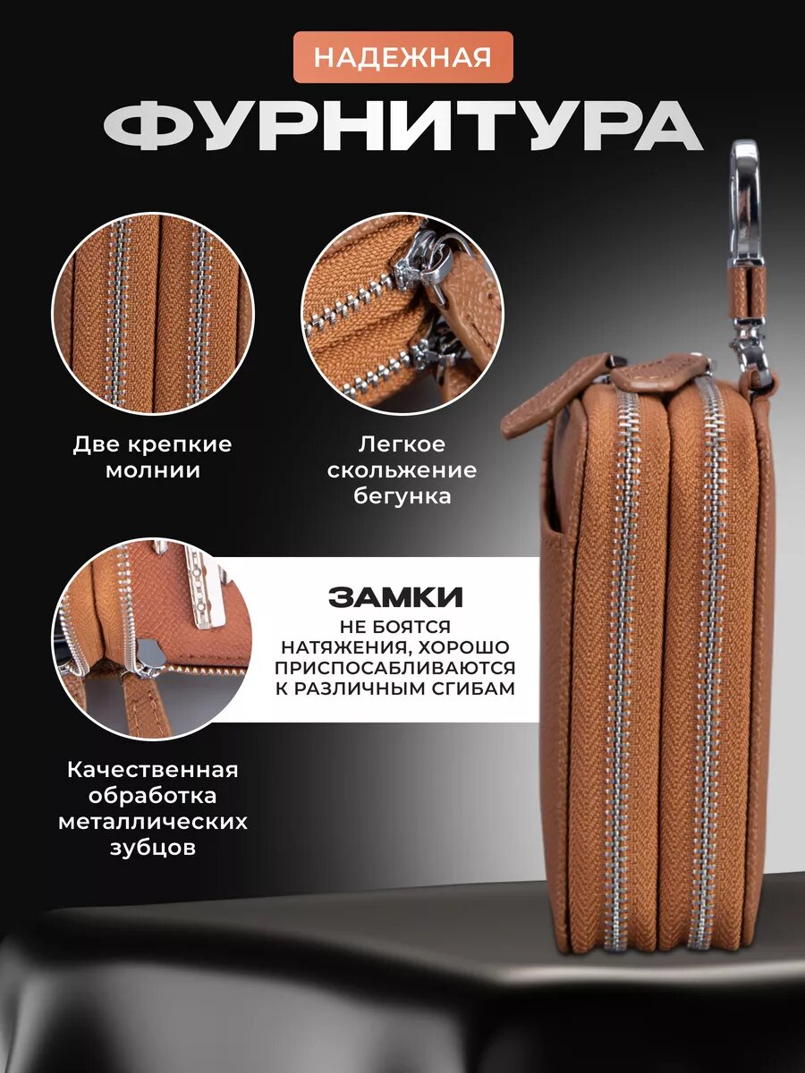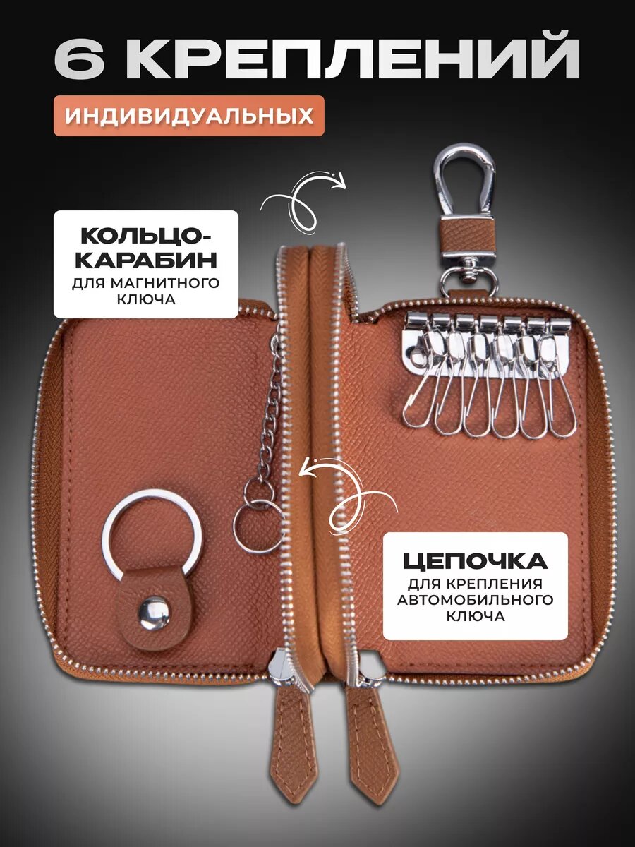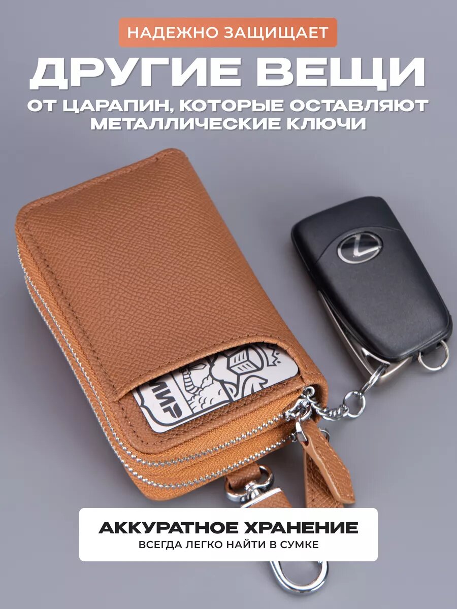 Ключница кожаная карманная на молнии для авто и сумки