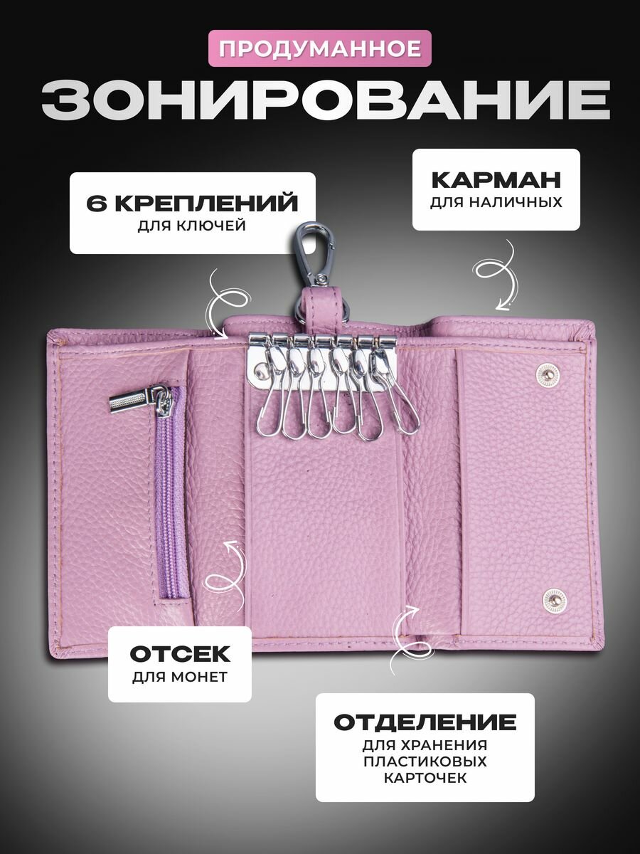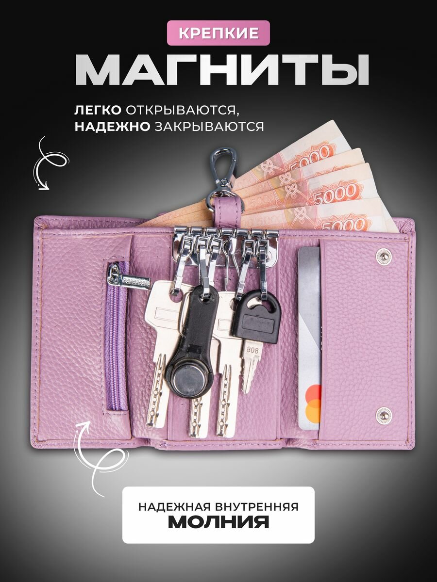 Ключница кожаная с карабином и карманом для мелочи и денег
