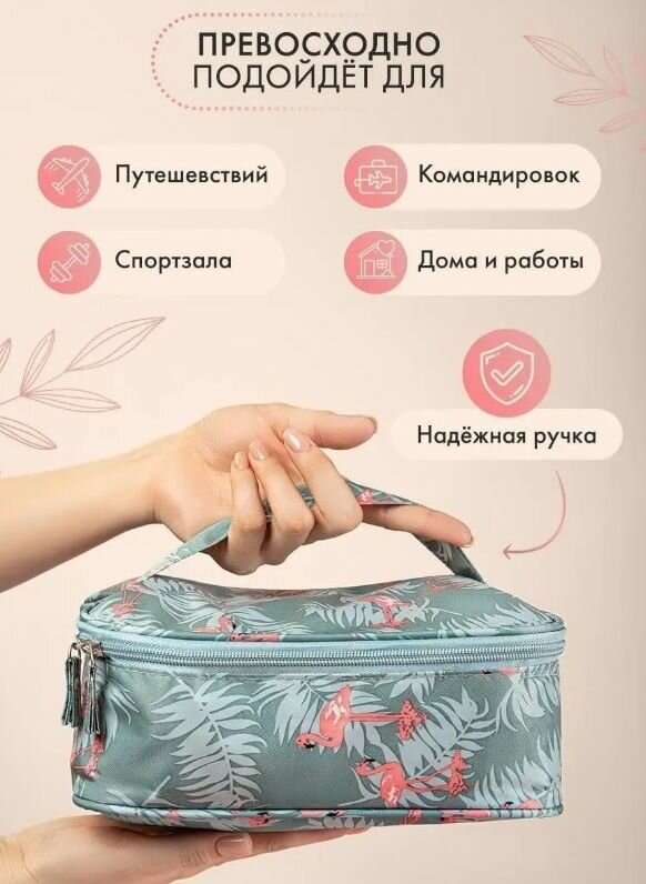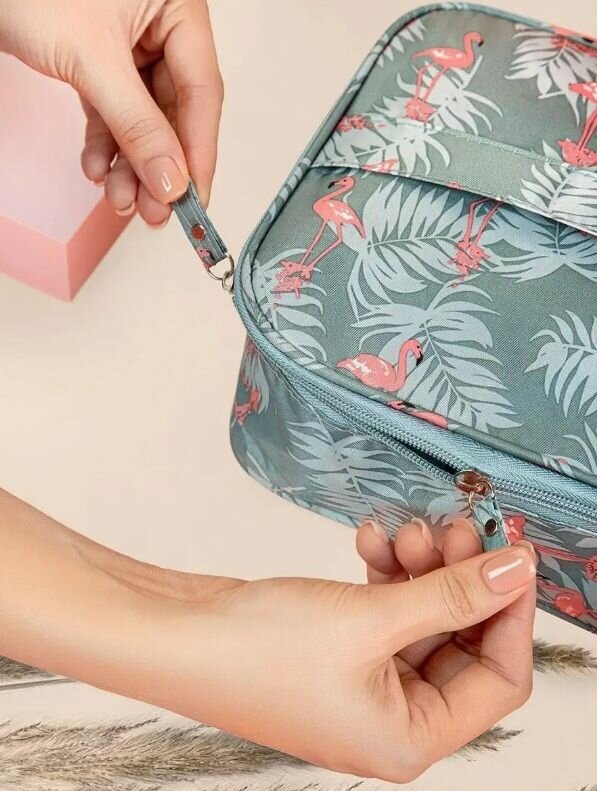 Косметичка женская, органайзер для хранения, несессер. Фламинго.