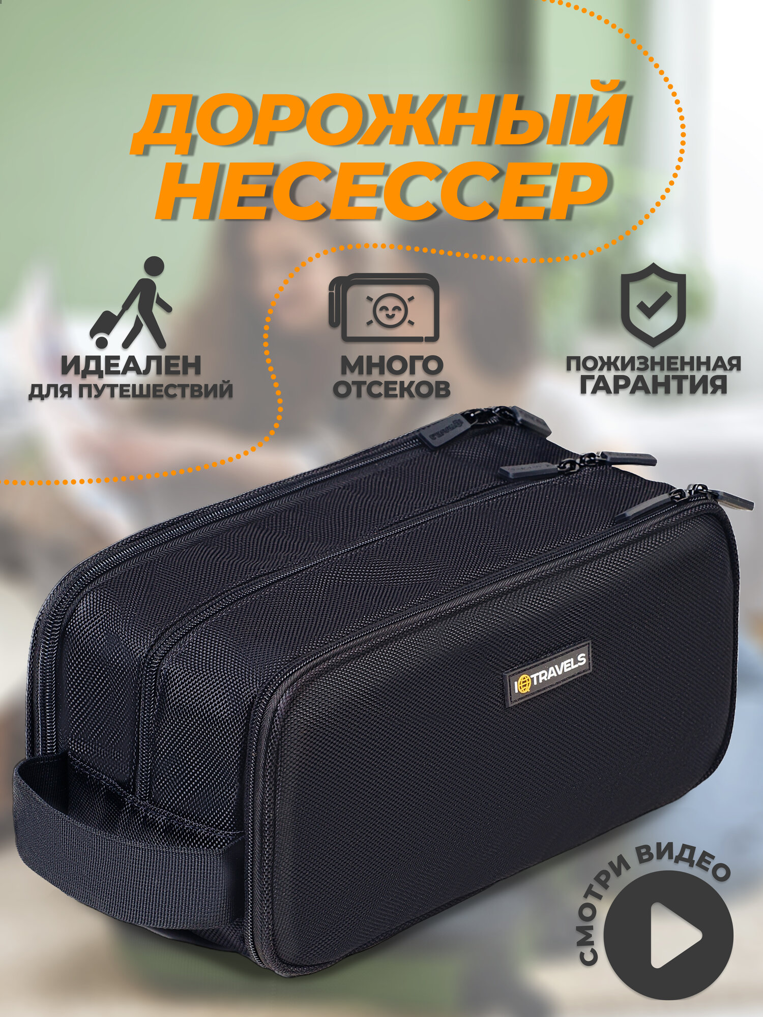 Косметичка IQTRAVELS, 16х30 см, , черный интересное: