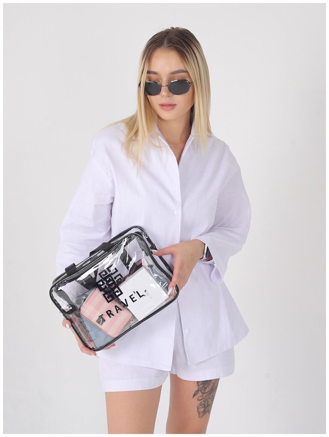 Косметичка водонепроницаемая ПВХ на молнии сумочка с ручкой TRAVEL, прозрачная 29,5*11*21см
