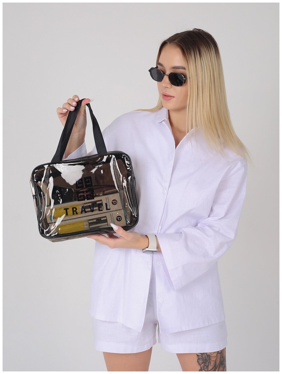 Косметичка водонепроницаемая ПВХ на молнии сумочка с ручкой TRAVEL, прозрачная 29,5*11*21см
