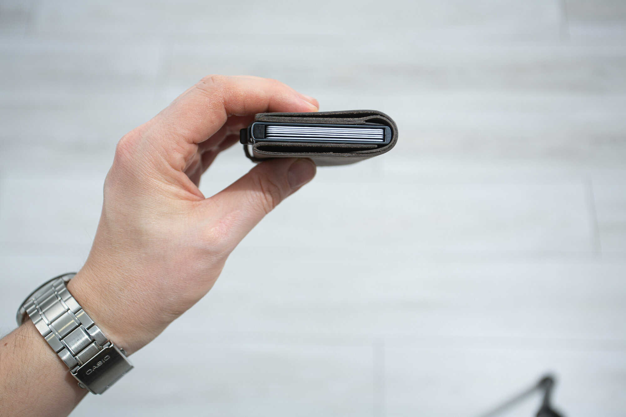 Мини-кошелек CardGo из натуральной кожи со встроенным алюминиевым корпусом (RFID / NFC защита) черный матовый