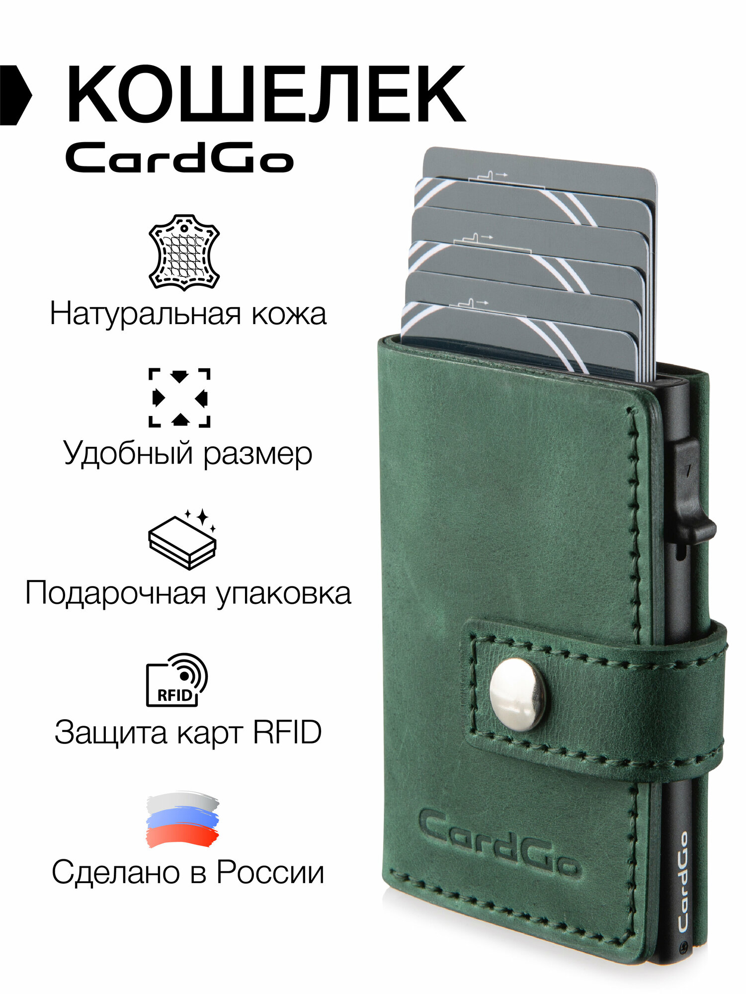 Мини-кошелек CardGo из натуральной кожи со встроенным алюминиевым корпусом (RFID / NFC защита) изумрудный