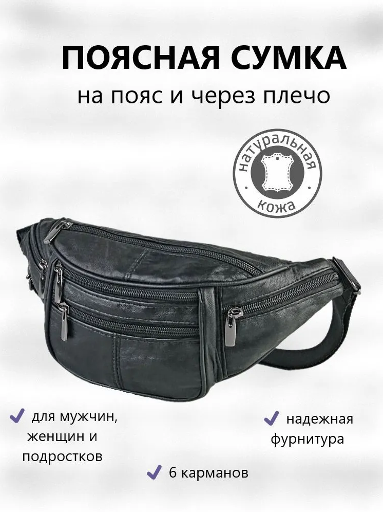 Сумка поясная натуральная кожа (Черная)