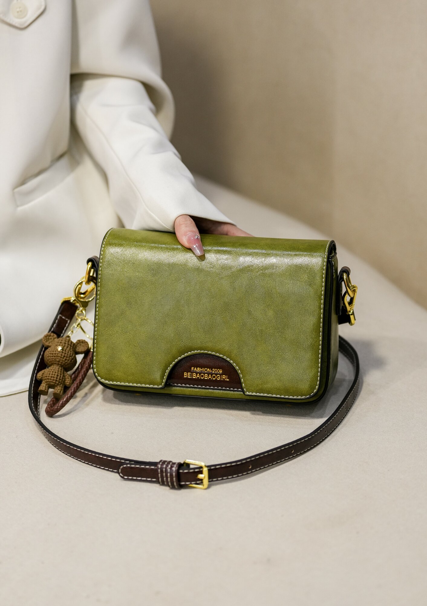 Сумка Beibaobao женская хаки с тонким ремнем
