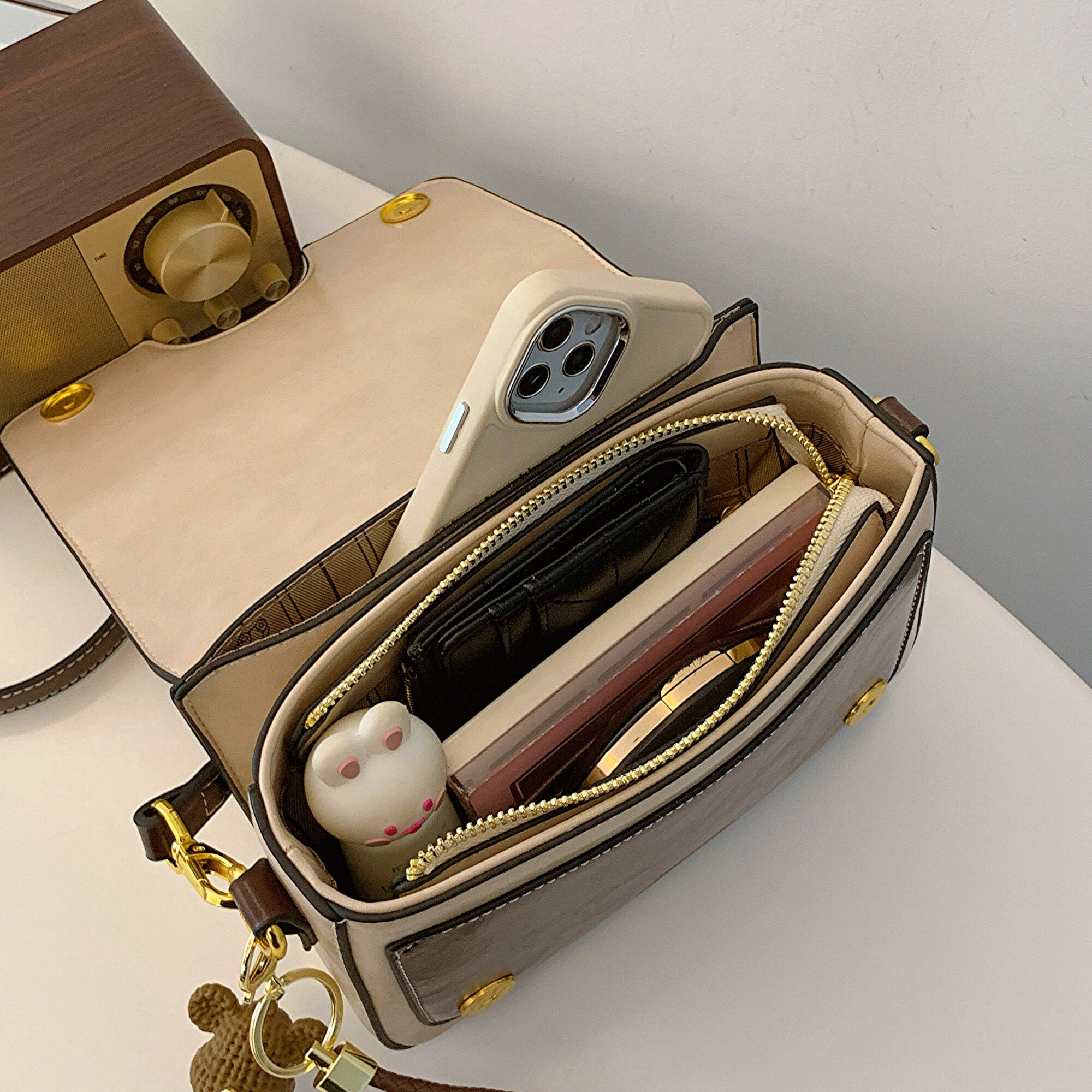 Сумка Beibaobao женская молочная с тонким ремнем
