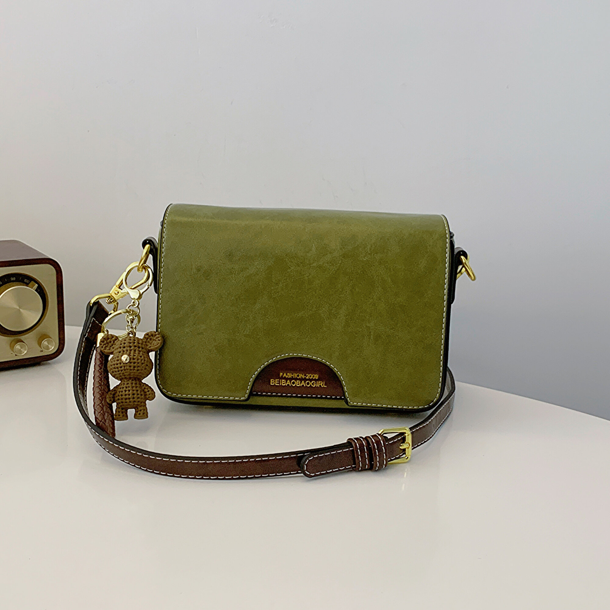 Сумка кросс-боди BeiBaoBao, фактура гладкая, хаки интересное: