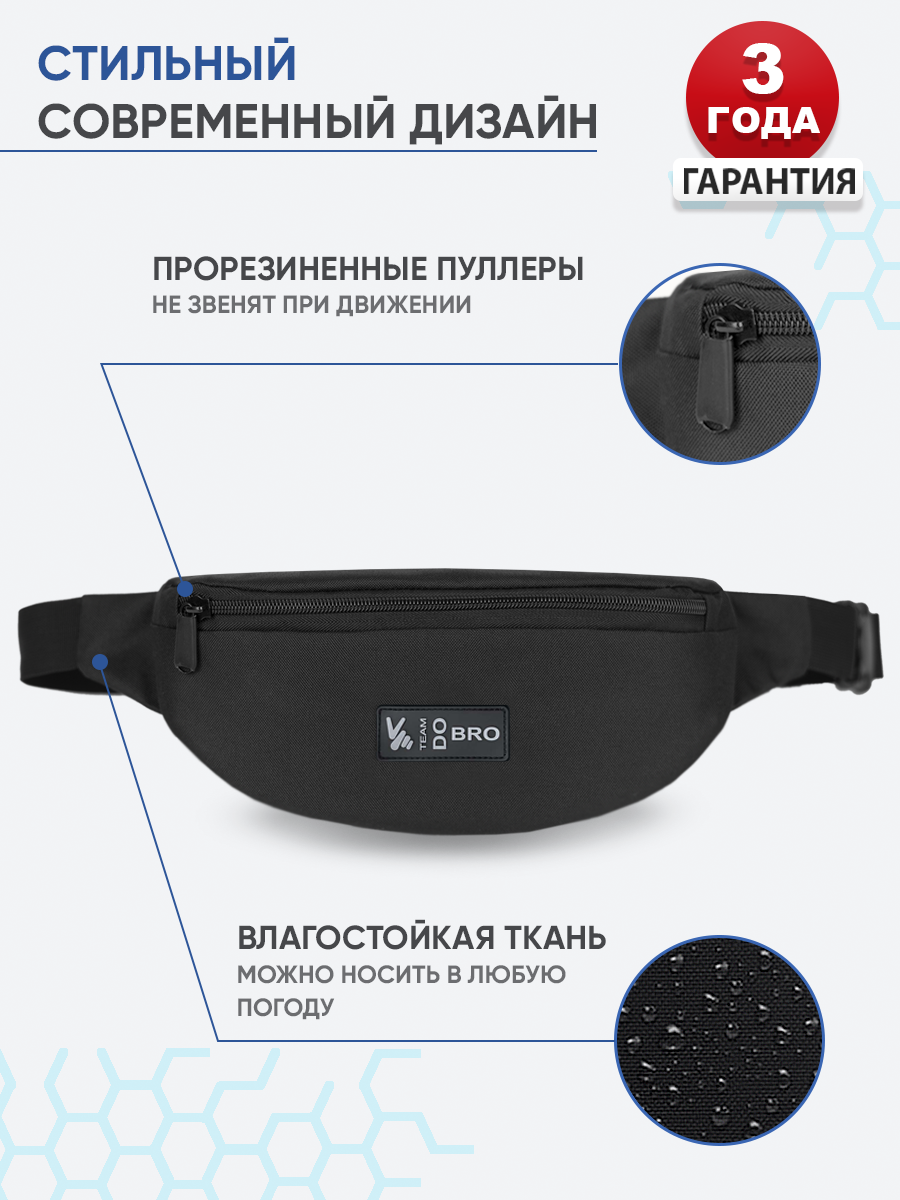 Сумка поясная DoBro, фактура зернистая, черный интересное: