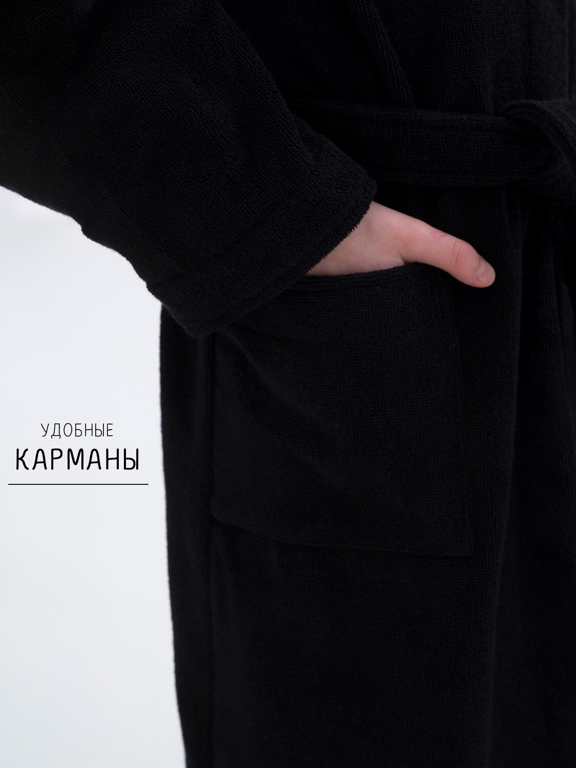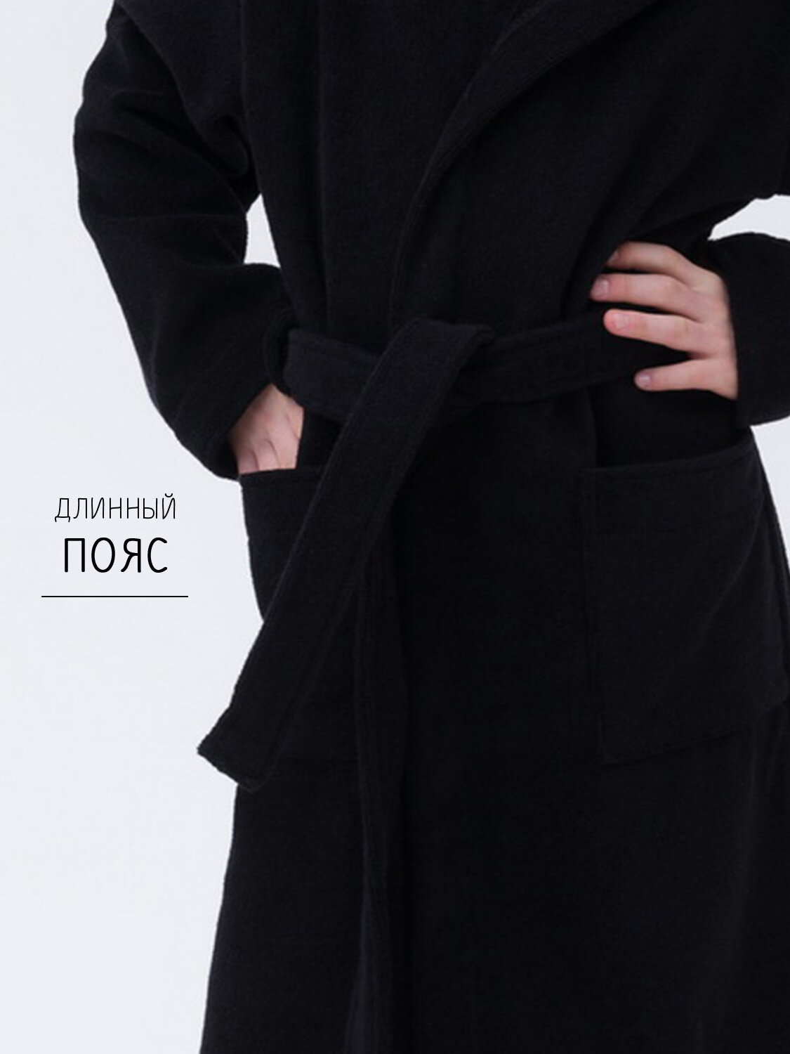 Детский махровый халат с капюшоном Росхалат, черный. Размер 38-40