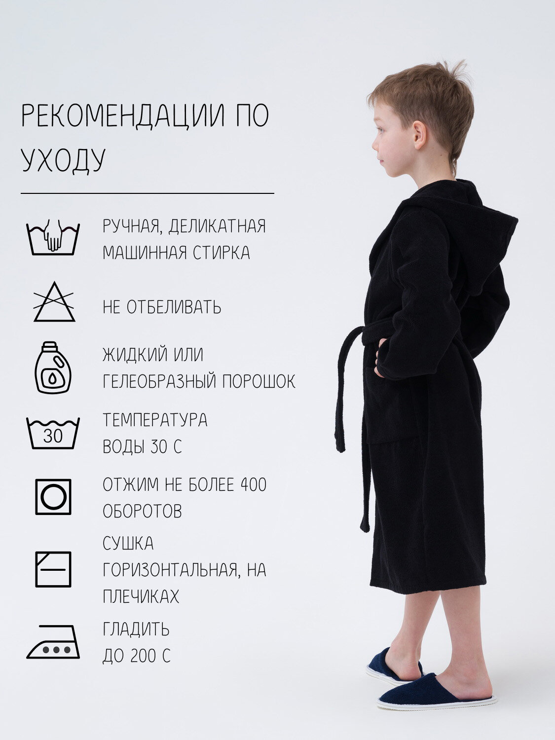 Детский махровый халат с капюшоном Росхалат, черный. Размер 34-36