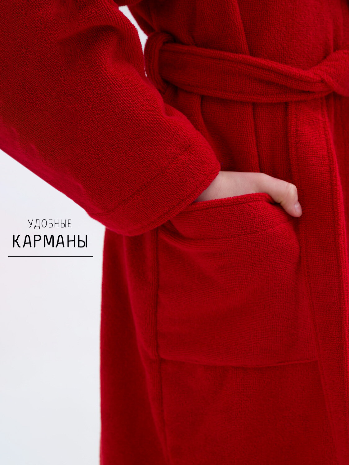 Детский банный махровый халат красный с капюшоном Росхалат для девочек для мальчиков 110-122