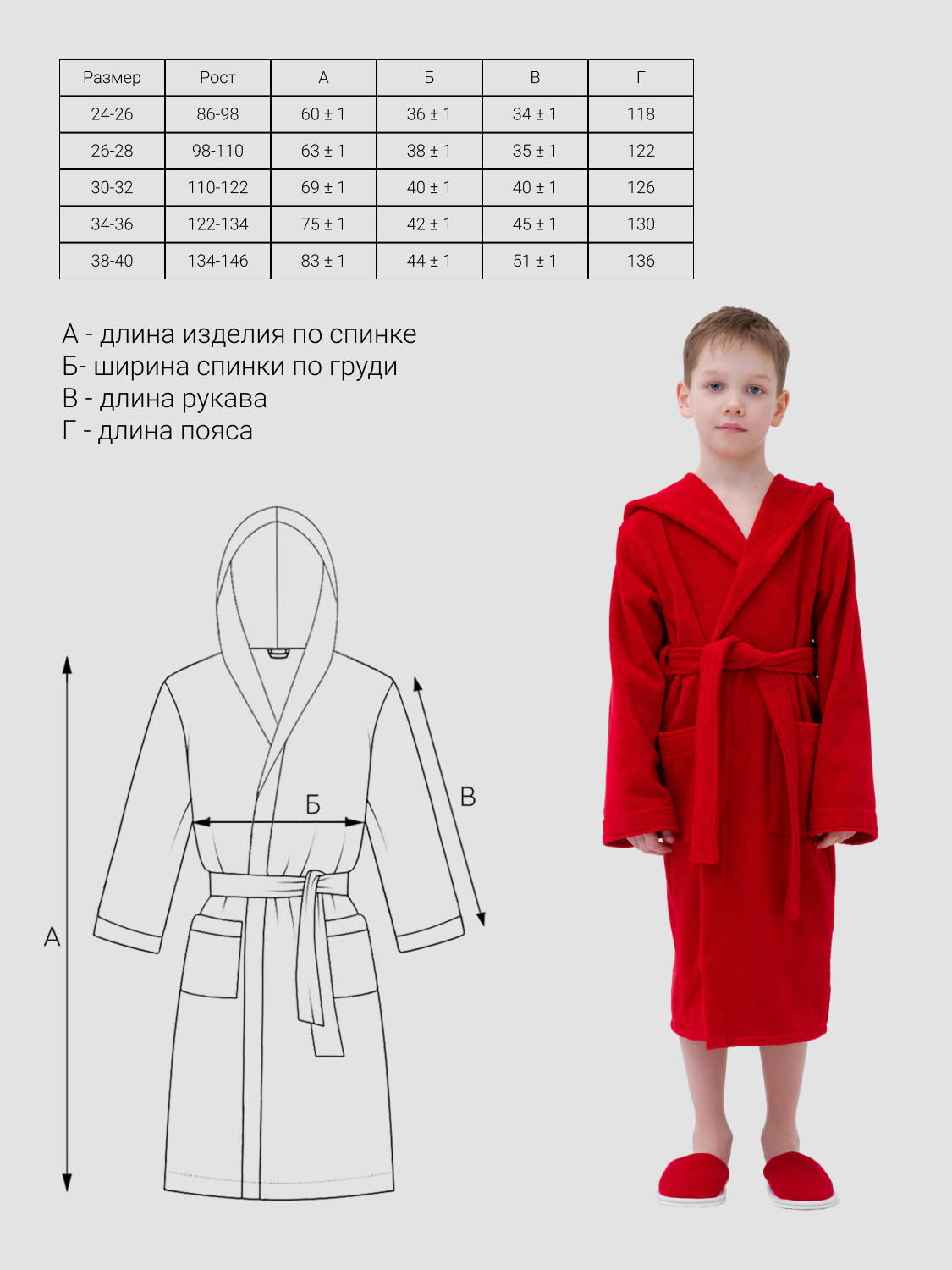 Детский махровый халат с капюшоном Росхалат, красный. Размер 34-36