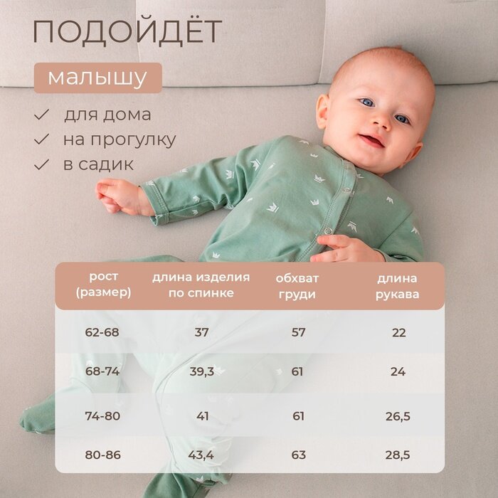 Комбинезон детский MINAKU цвет изумрудный, рост 62-68 см
