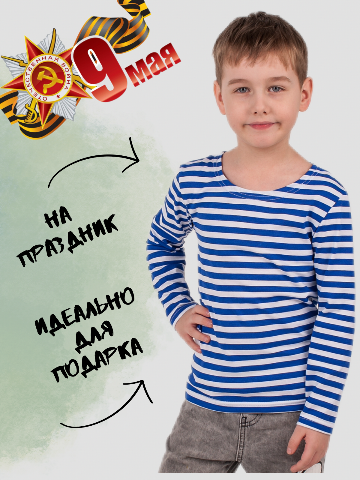 Купить Лонгслив Дети в цвете Детская тельняшка в полоску, размер 36-128, белый/синий