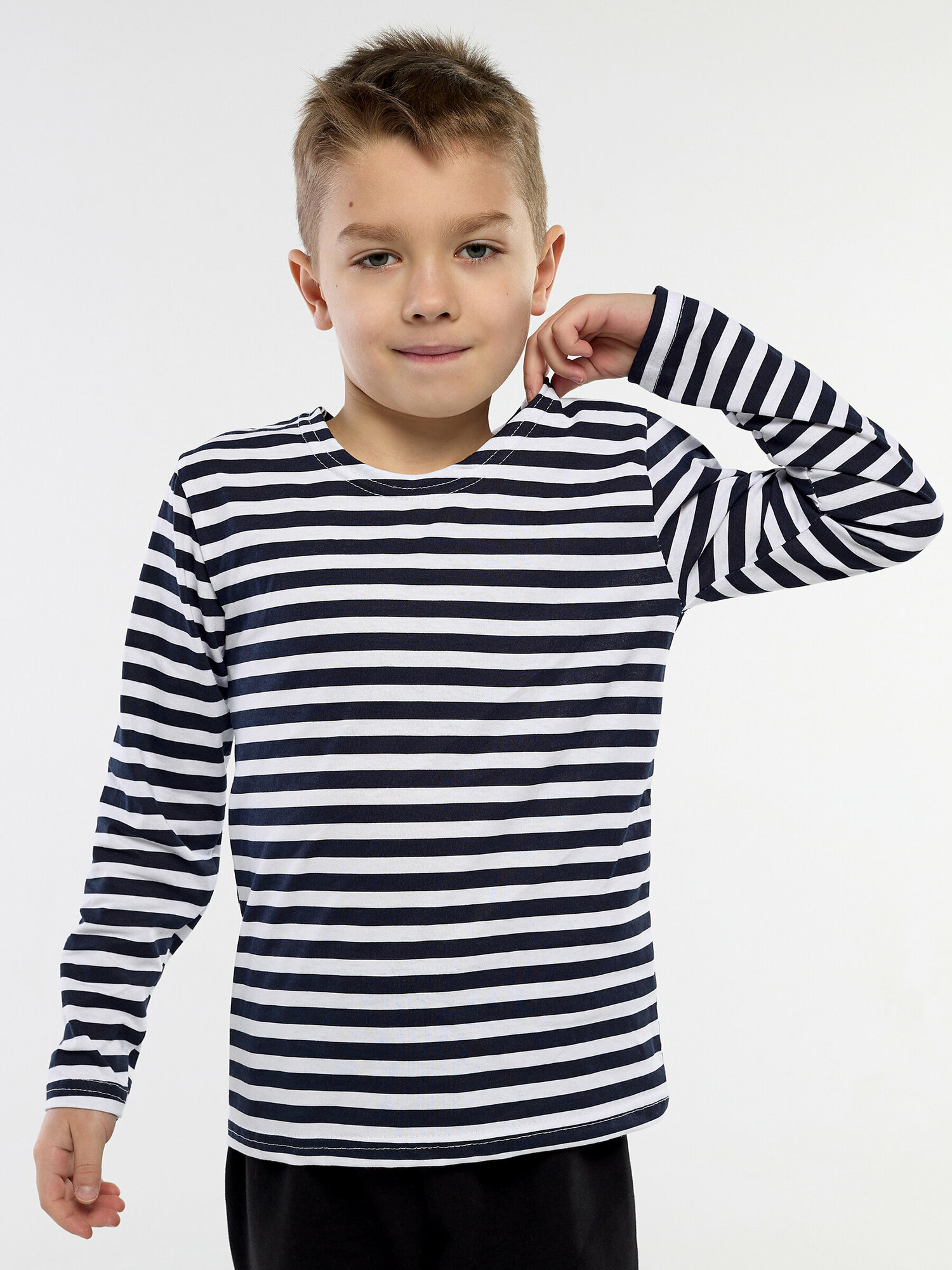 Купить Лонгслив Дети в цвете Детская тельняшка в полоску, размер 40-140, белый/черный