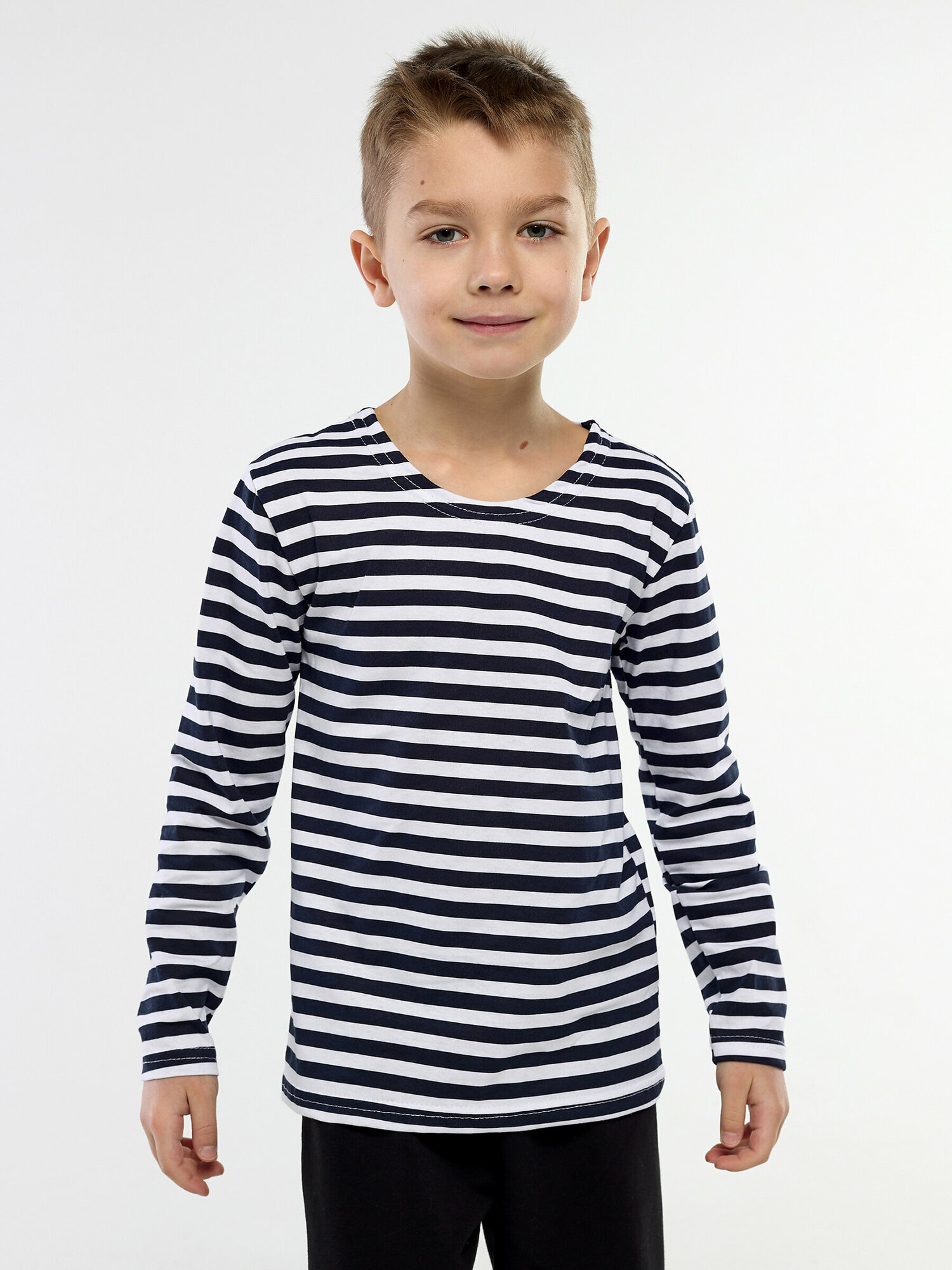 Лонгслив Дети в цвете Детская тельняшка в полоску, размер 38-134, белый/синий