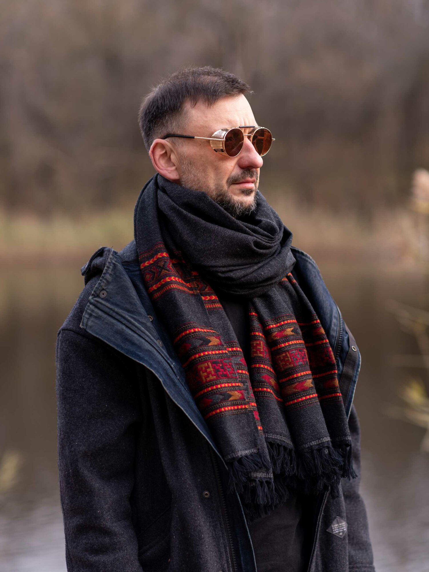 Шерстяной палантин с вышивкой (графит)