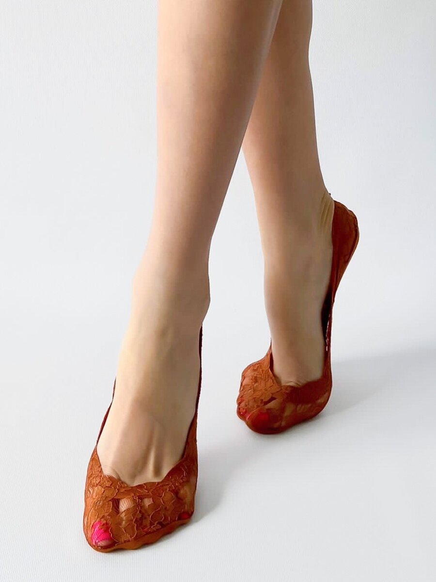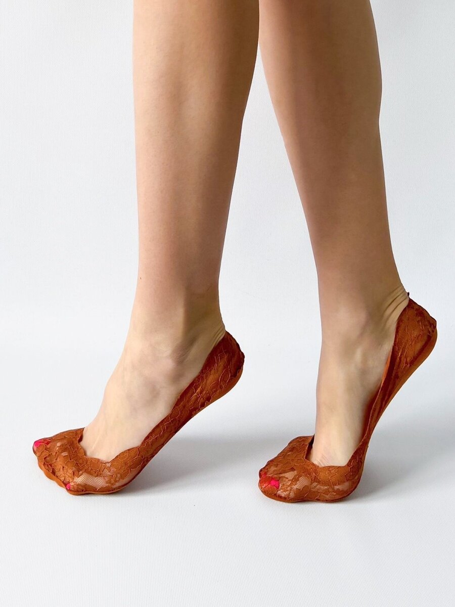 Кружевные подследники(следки) с цветочным узором, силиконовыми антискользящими вставками по резинке