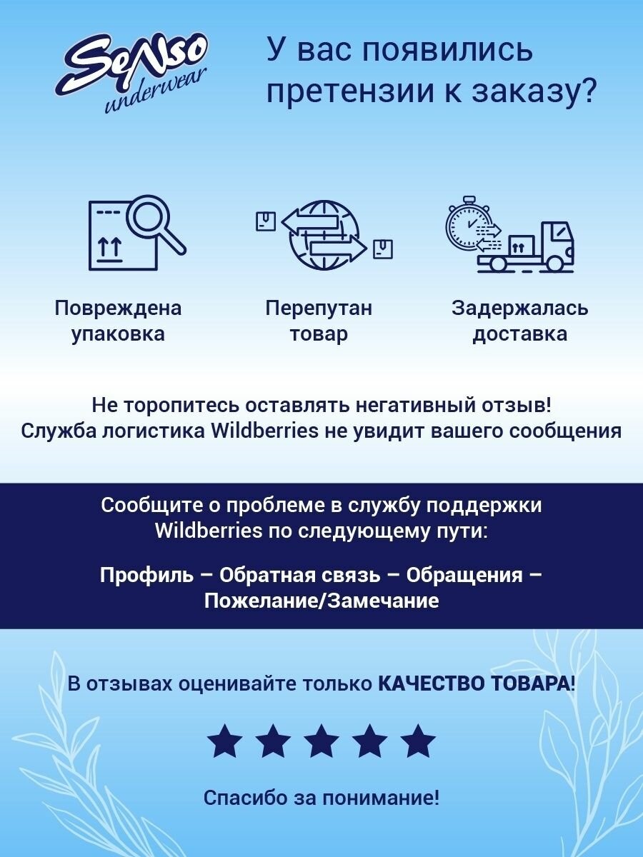 | Дополнительная информация | Трусы сшиты из хлопка, декорированы мягким эластичным кружевом, удобные, комфортно сидят, не давят, не врезаются, незаметны под одеждой, подходят на каждый день. |