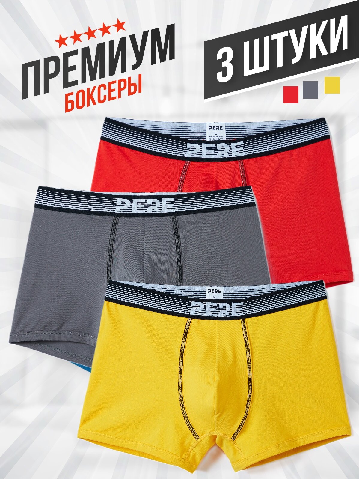 Трусы PERE, комплект из 3 шт., размер XL, желтый, серый, красный