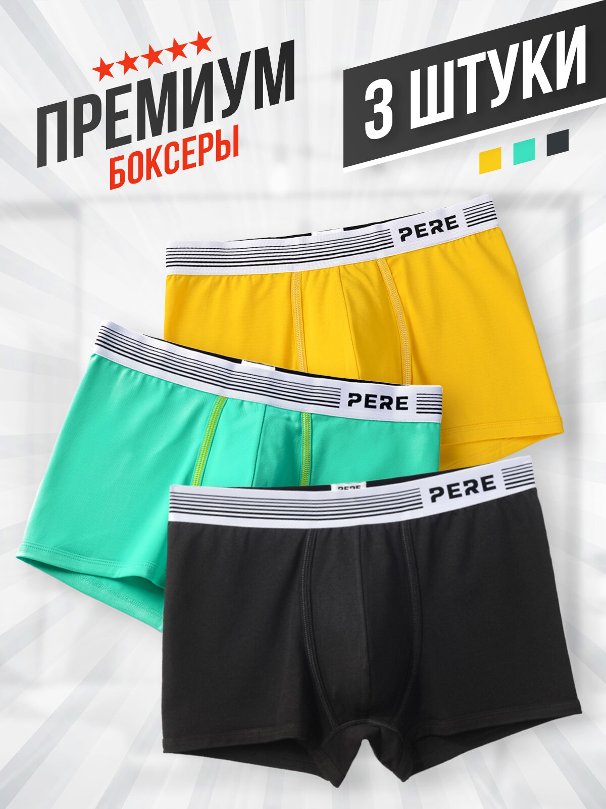 Мужские трусы боксеры PERE, набор 3 шт.