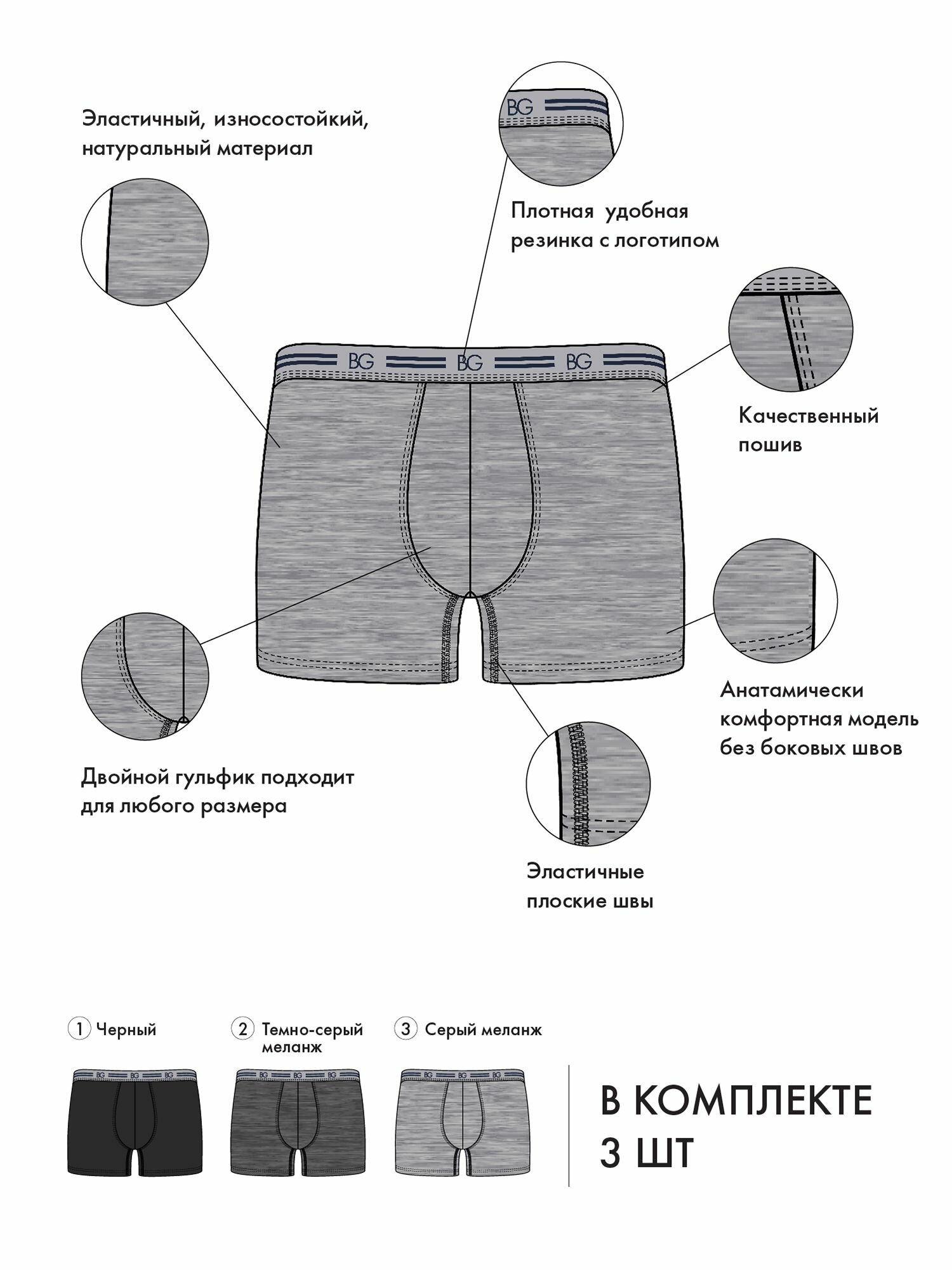 СохранитьТрусы BeGood, комплект из 3 шт., размер 48, черный/темно-серый/серый интересное: