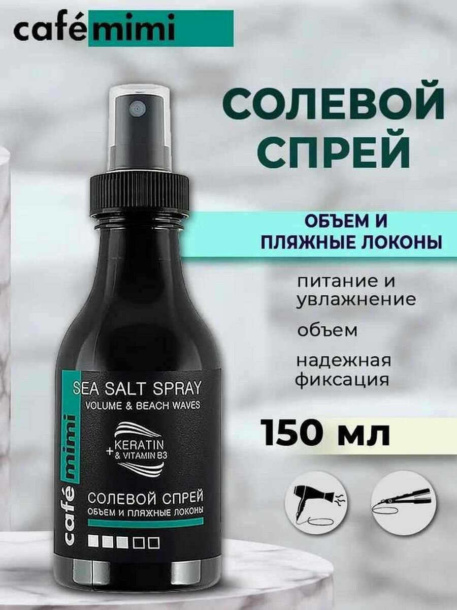 Cafe mimi Солевой спрей для укладки волос Объем и пляжные локоны, средняя фиксация, 150 мл