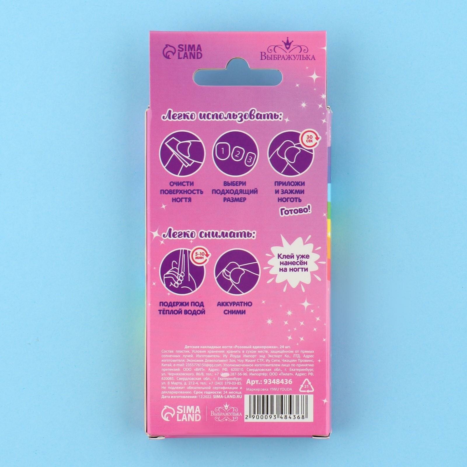 Накладные ногти детские "Розовый единорожка" розовый, 24 шт, Выбражулька интересное:
