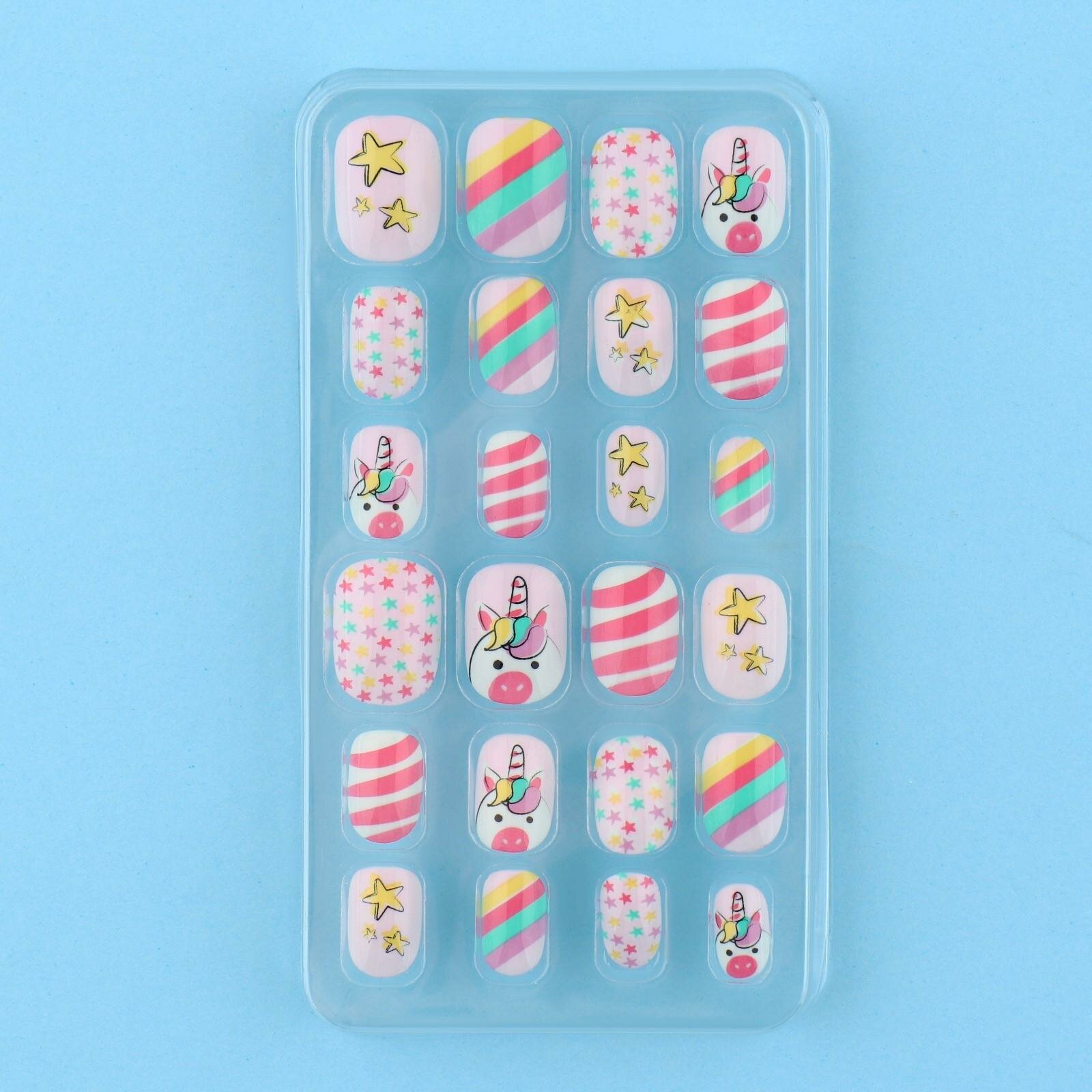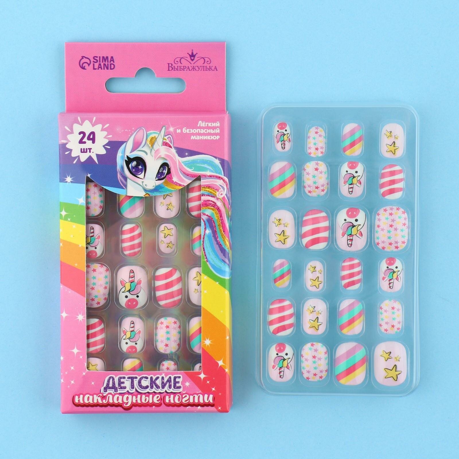 Накладные ногти детские Выбражулька "Единорожка", 12 шт, клей на ногтях