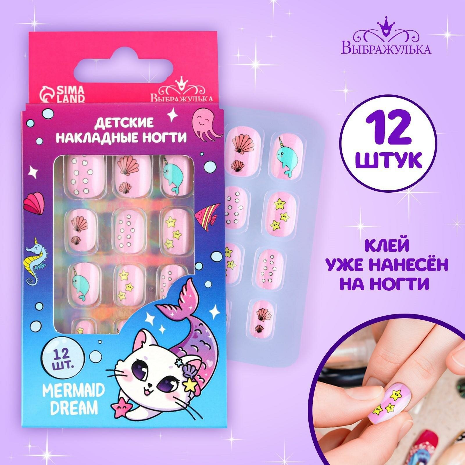 Купить Накладные ногти детские Выбражулька "Mermaid Dream", 12 шт, клей на ногтях