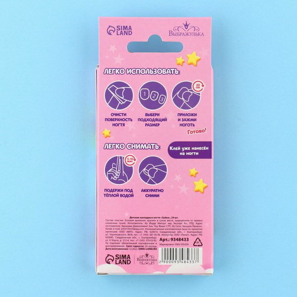 Детские накладные ногти "Зайка", 24 шт интересное: