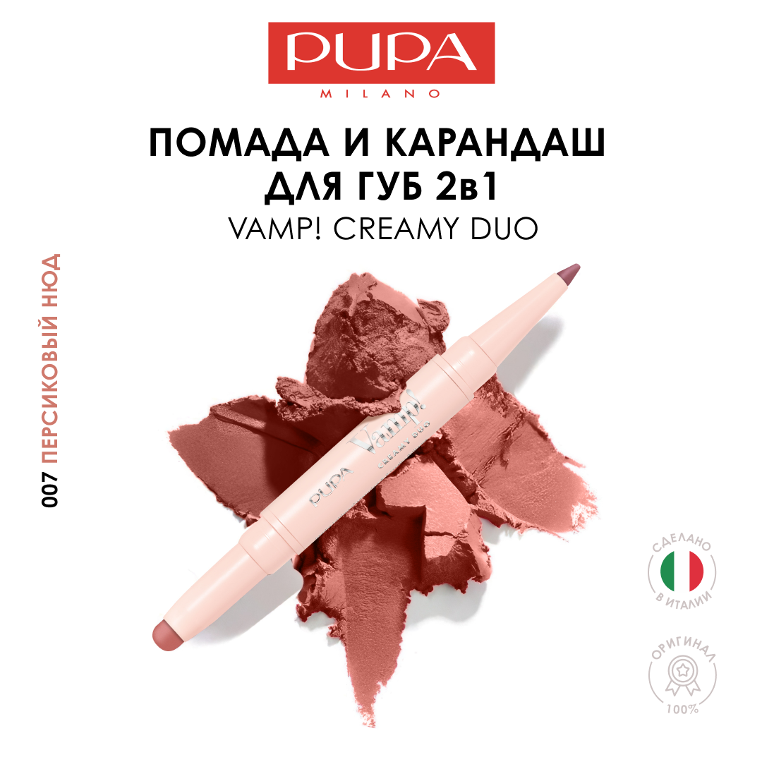 Купить PUPA Помада для губ матовая увлажняющая VAMP! CREAMY DUO №007 персиковый нюд