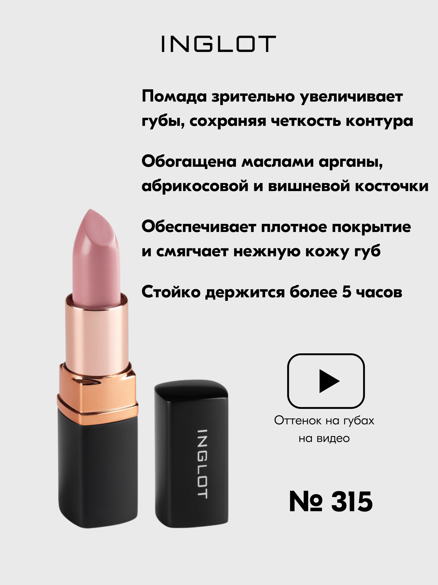 Ниже Вы можете прочитать отзывы на Помада сатиновая стойкая для губ INGLOT полуматовый финиш, кремовая текстура №315S, ознакомится с подробными характеристиками, посмотреть интересные обзоры и фотографии на Помада сатиновая стойкая для губ INGLOT полуматовый финиш, кремовая текстура №315S.