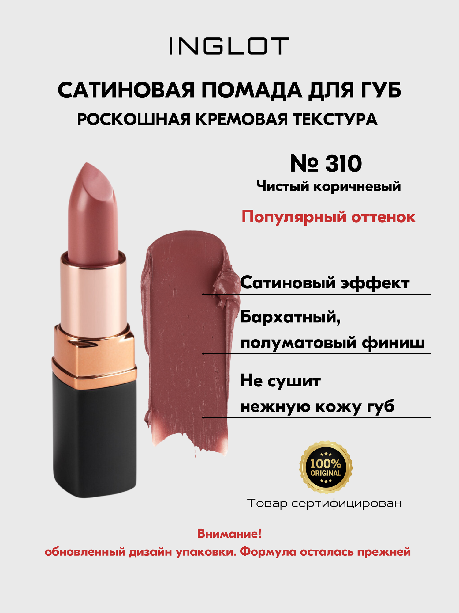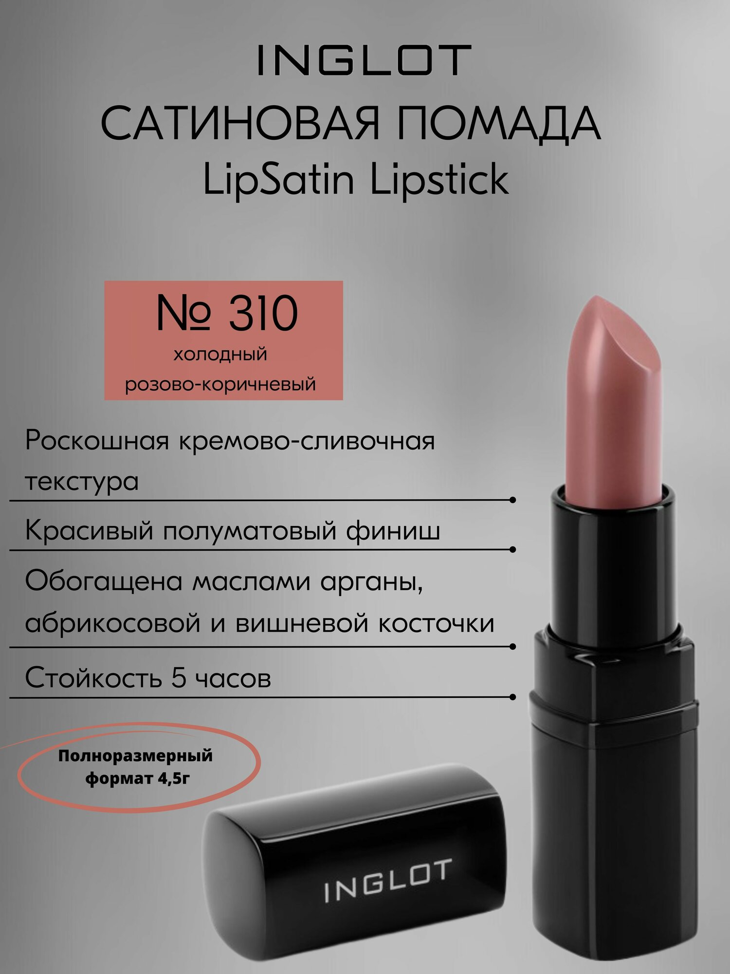 СохранитьINGLOT Губная помада LipSatin 310, увлажняющий эффект, SPF- защита, 4.5 г интересное:
