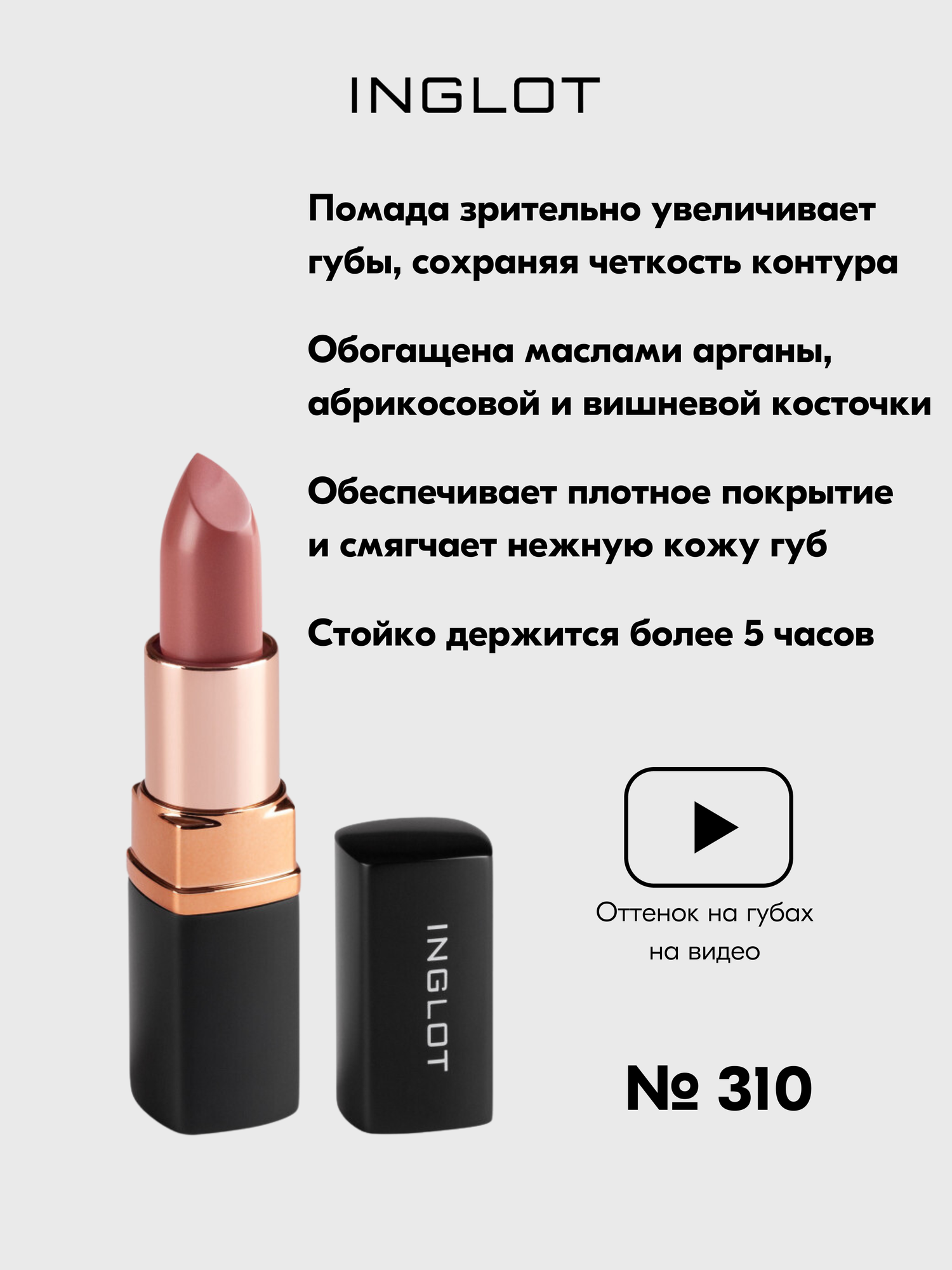 Купить INGLOT Губная помада LipSatin 310, увлажняющий эффект, SPF- защита, 4.5 г