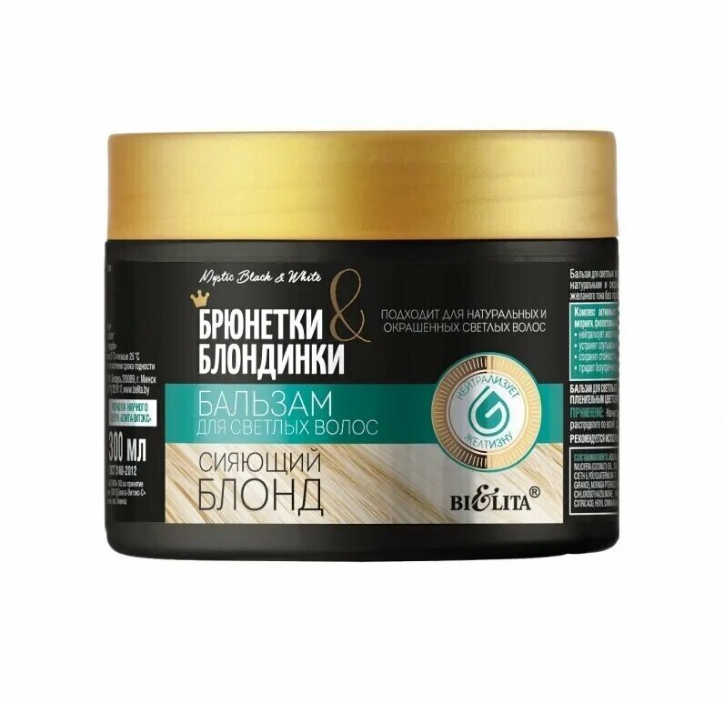 BELITA Бальзам для осветленных волос нейтрализатор желтизны Брюнетки и Блондинки Сияющий блонд 300 мл 6 шт