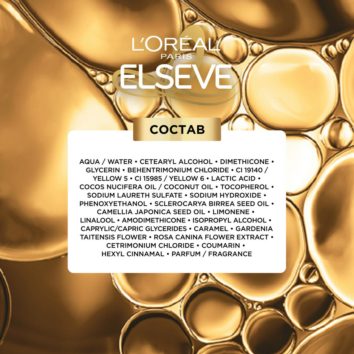 | Состав | aqua/water, cetyl alcohol, glycerin, amodimethicone, ci 77891/titanium dioxide, ci 77491/iron oxides, ci 15985/yellow 6, ci 19140/yellow 5, chamomilla recutita extract/matricaria flower extract, mica, cocos nucifera oil/coconut oil, hydroxyethylcellulose, stearyl alcohol, behentrimonium chloride, trideceth-6, chlorhexidine digluconate, helianthus annuus seed oil/sunflower seed oil, nelumbium speciosum extract/nelumbium speciosum flower, extract, linum usitatissimum flower extract, isopropyl alcohol, dipalmitoylethyl hydroxyethylmonium methosulfate, caprylic/capric triglyceride, myristyl alcohol, caramel, gardenia tahitensis flower extract, rosa canina flower extract, bisabolol, cetyl esters, cetearyl alcohol, cetrimonium chloride, bht, citric acid, glycine soja oil/soybean oil, parfum/fragrance |