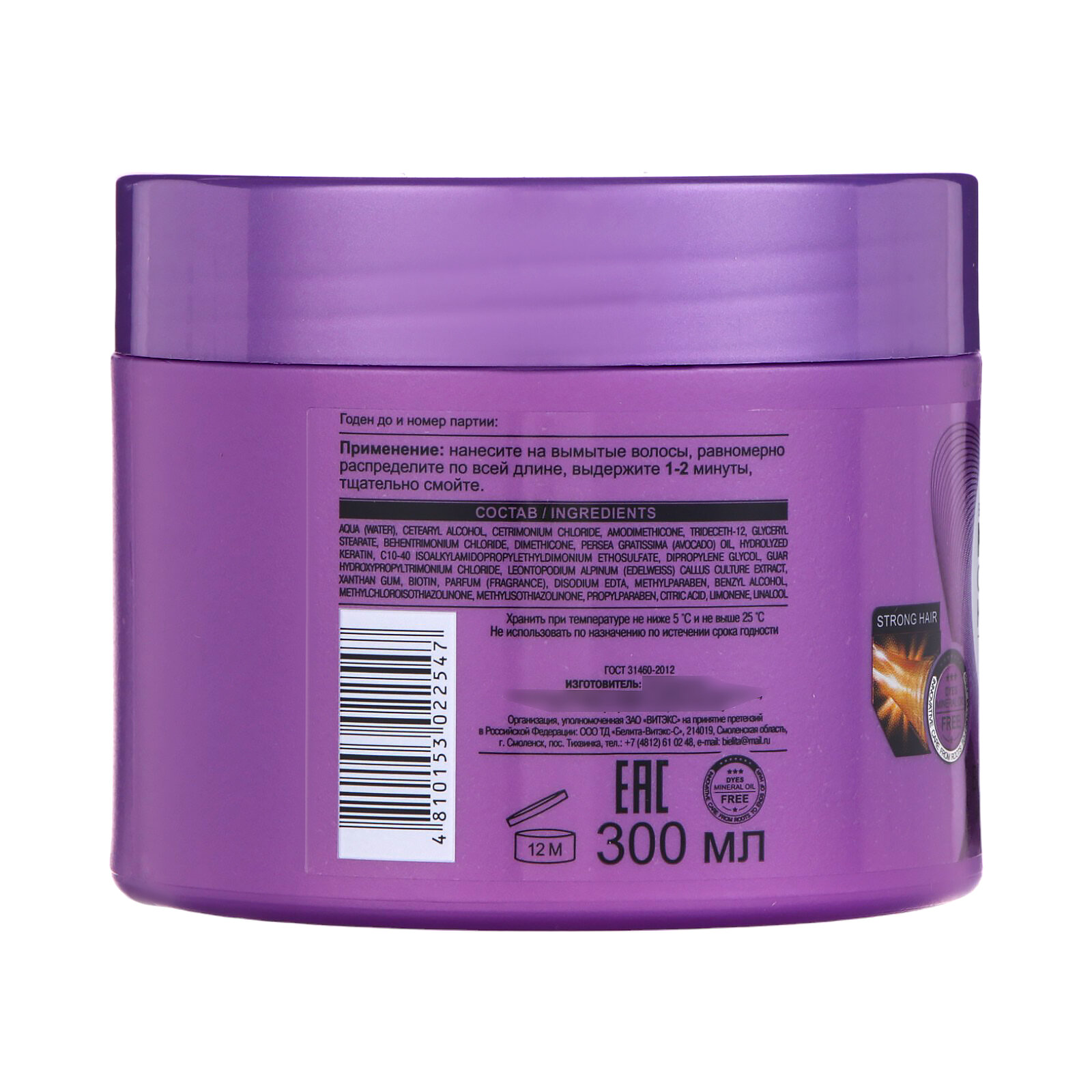 | Способ применения | нанесите на вымытые волосы, равномерно распределите по всей длине, выдержите 1-2 минуты, тщательно смойте. |