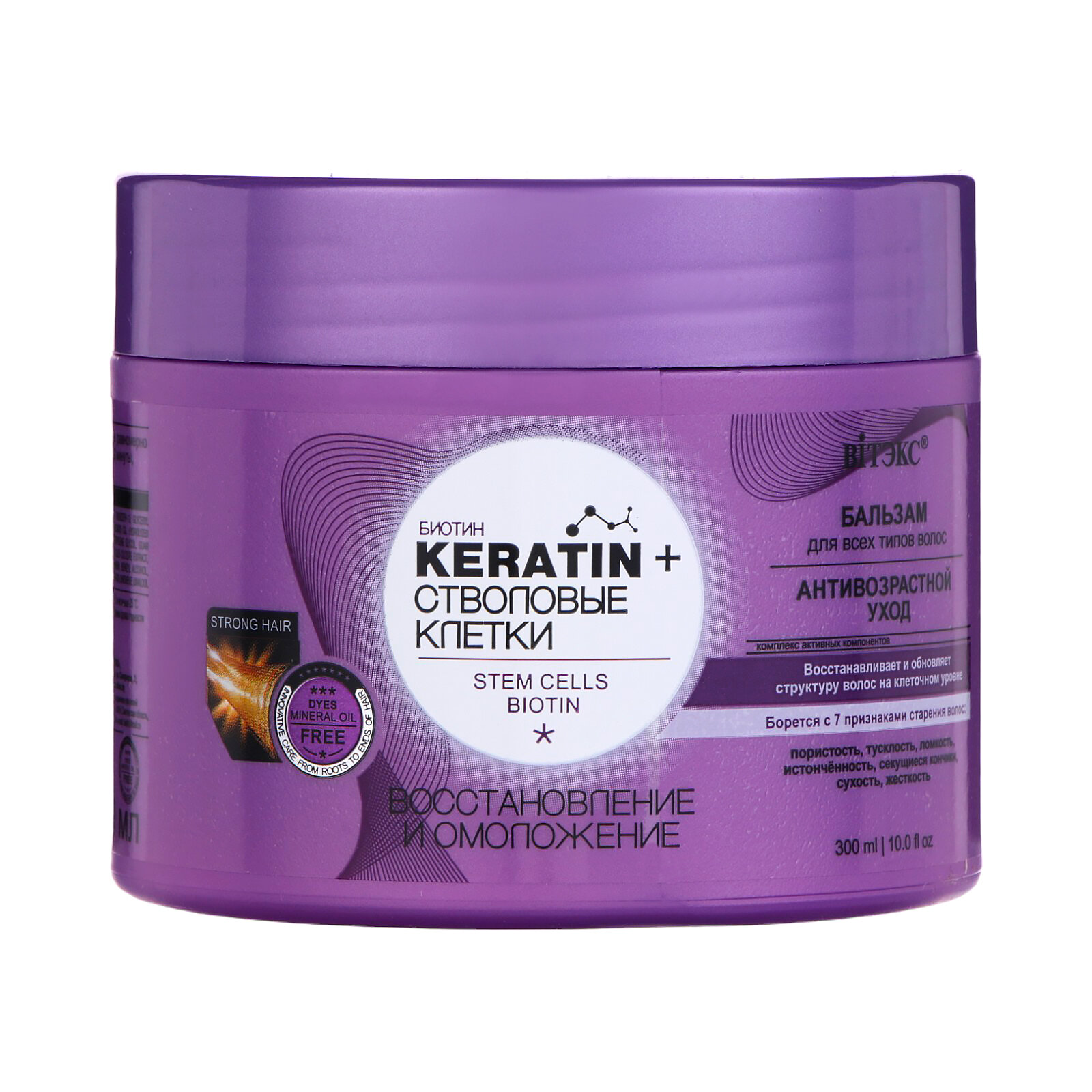 KERATIN+Стволовые Клетки Бальзам Восстановление и омоложение, для всех типов волос, 300 мл, Витэкс