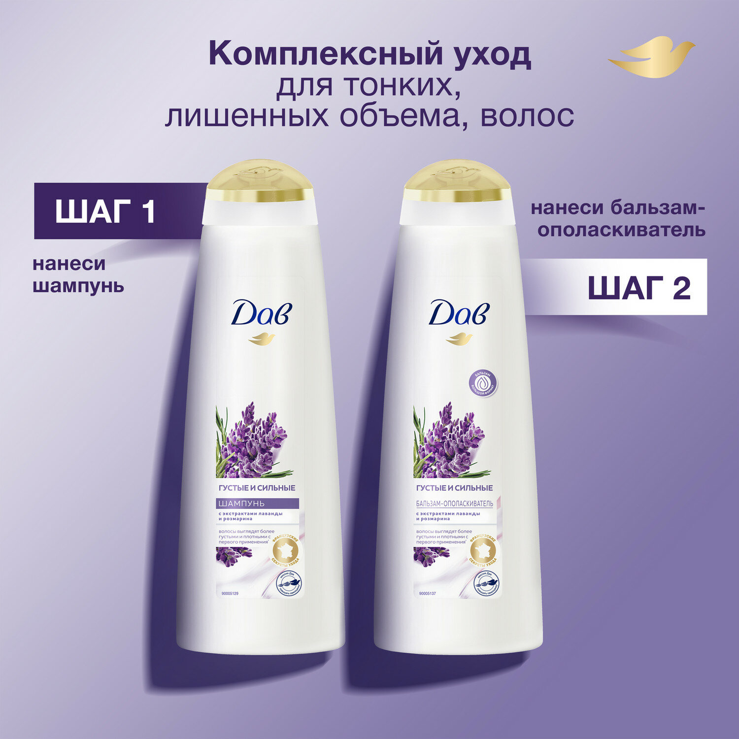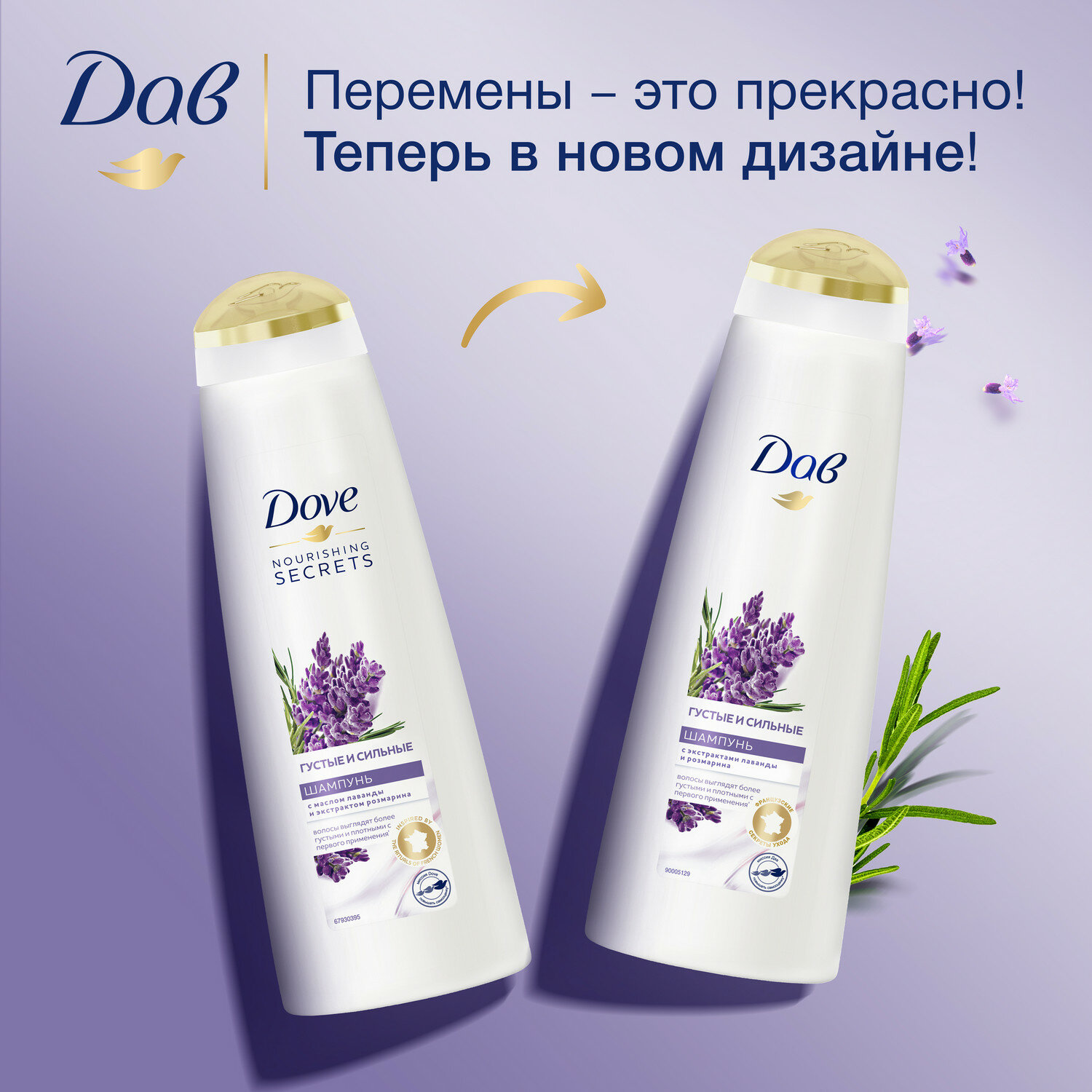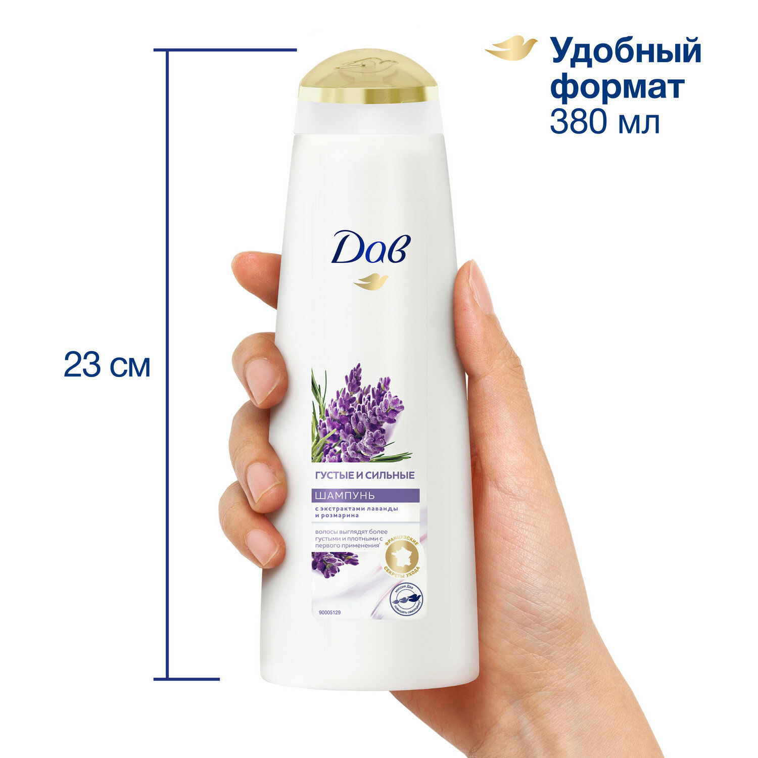 Шампунь для волос женский питательный Дав Густые и сильные Лаванда и розмарин 380 мл, интересное: