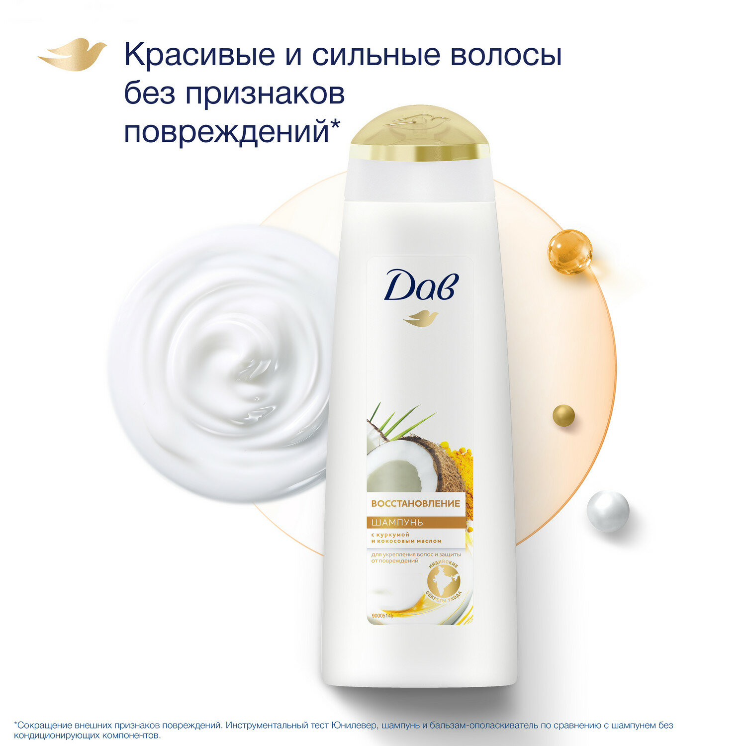 Купить Шампунь для волос женский Дав восстанавливающий с кокосом и куркумой 250 мл