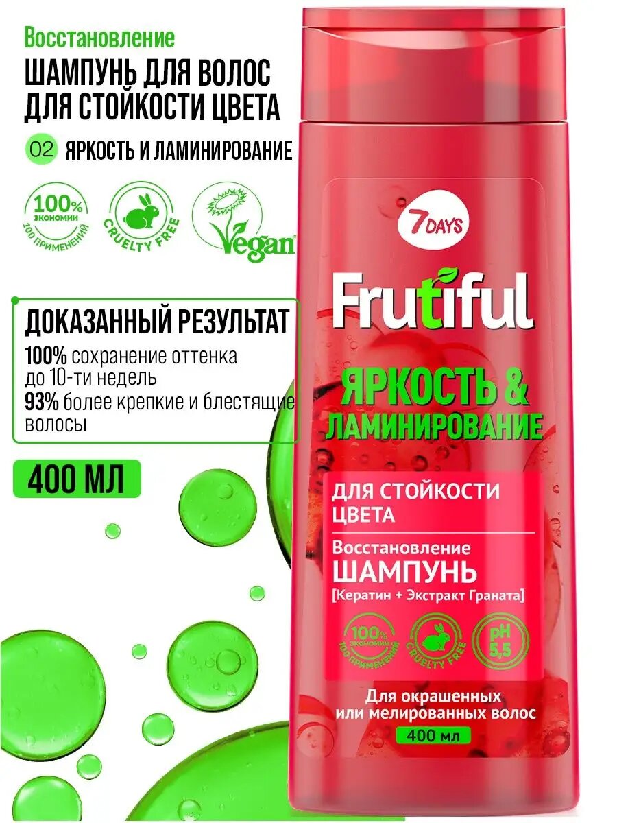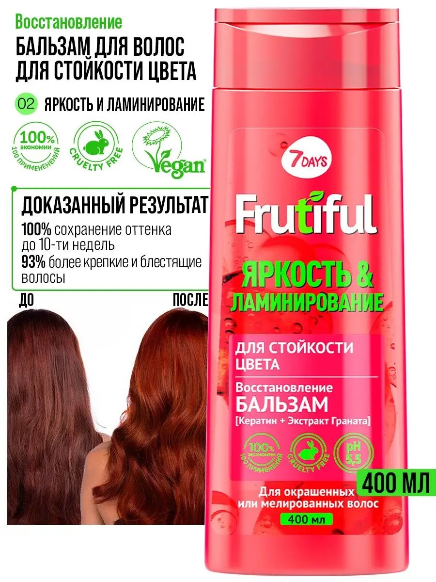 Шампунь и бальзам для волос 7DAYS FRUTIFUL Яркость и Ламинирование, набор для окрашенных волос