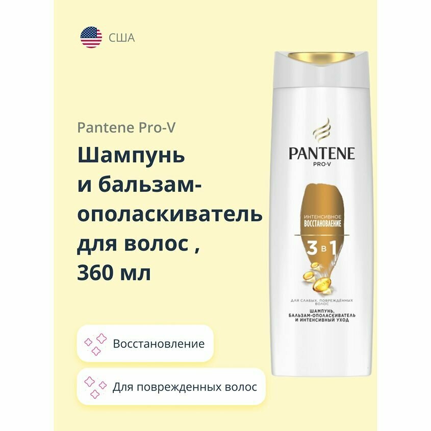 Шампунь Pantene бальзам-ополаскиватель и интенсивный уход, 3 в 1, Интенсивное восстановление, 360 мл