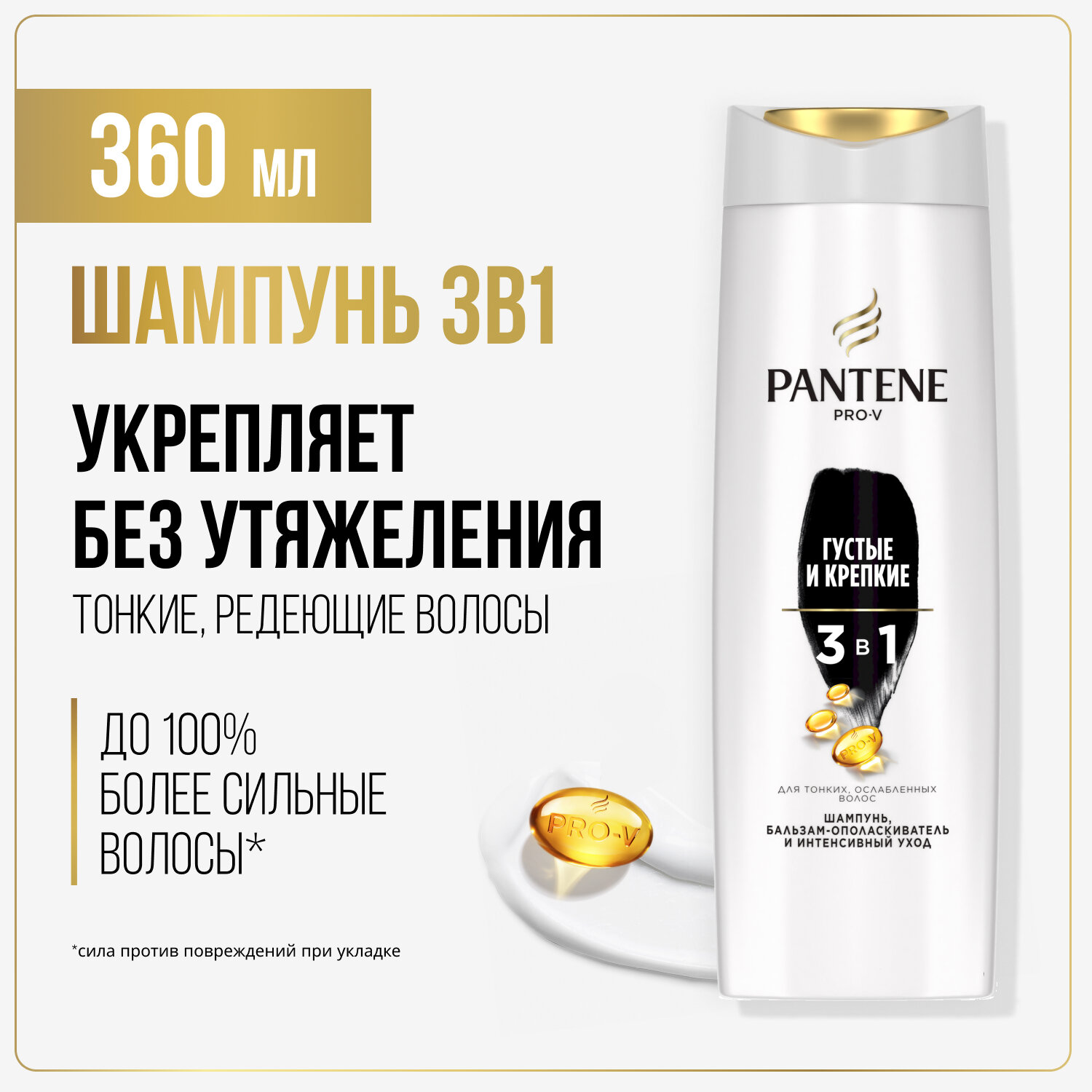 PANTENE Pro-V Шампунь 3 в 1 Густые и крепкие, для тонких и ослабленных волос, Пантин, 360 мл, интересное: